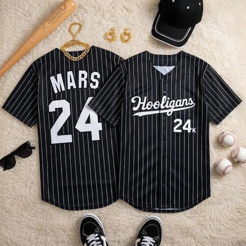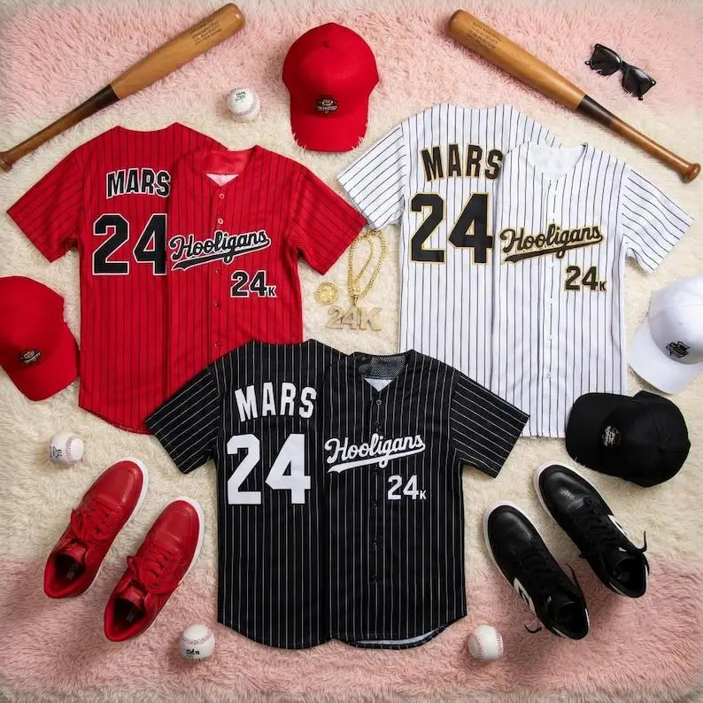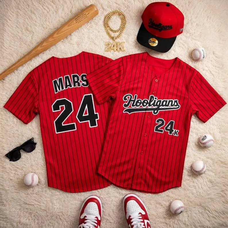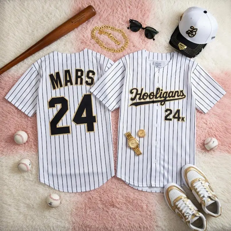 Mars Hooligans Baseball Jersey – Number 24K Baseball Jersey – 3D Printed Unisex Fan Apparel Shirts, Unique Gift Idea For Fan, All Over Print
