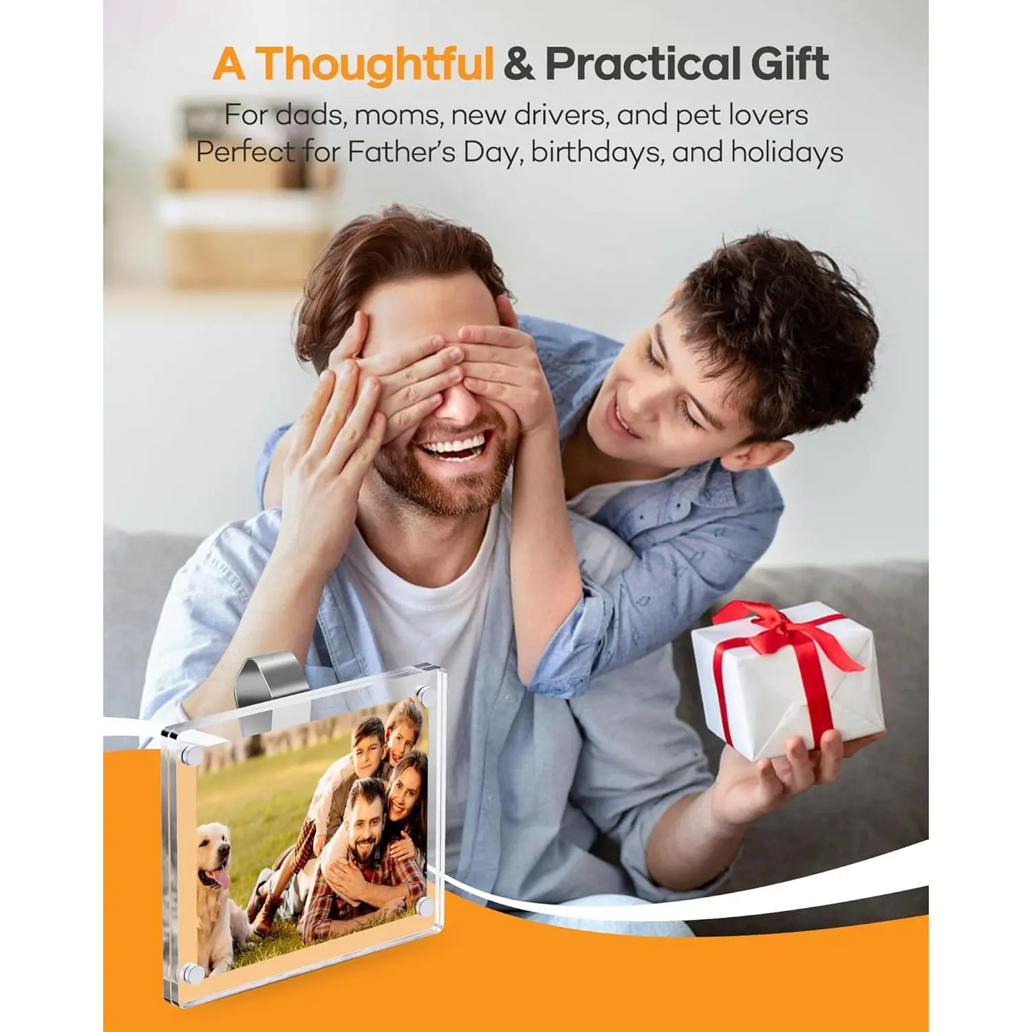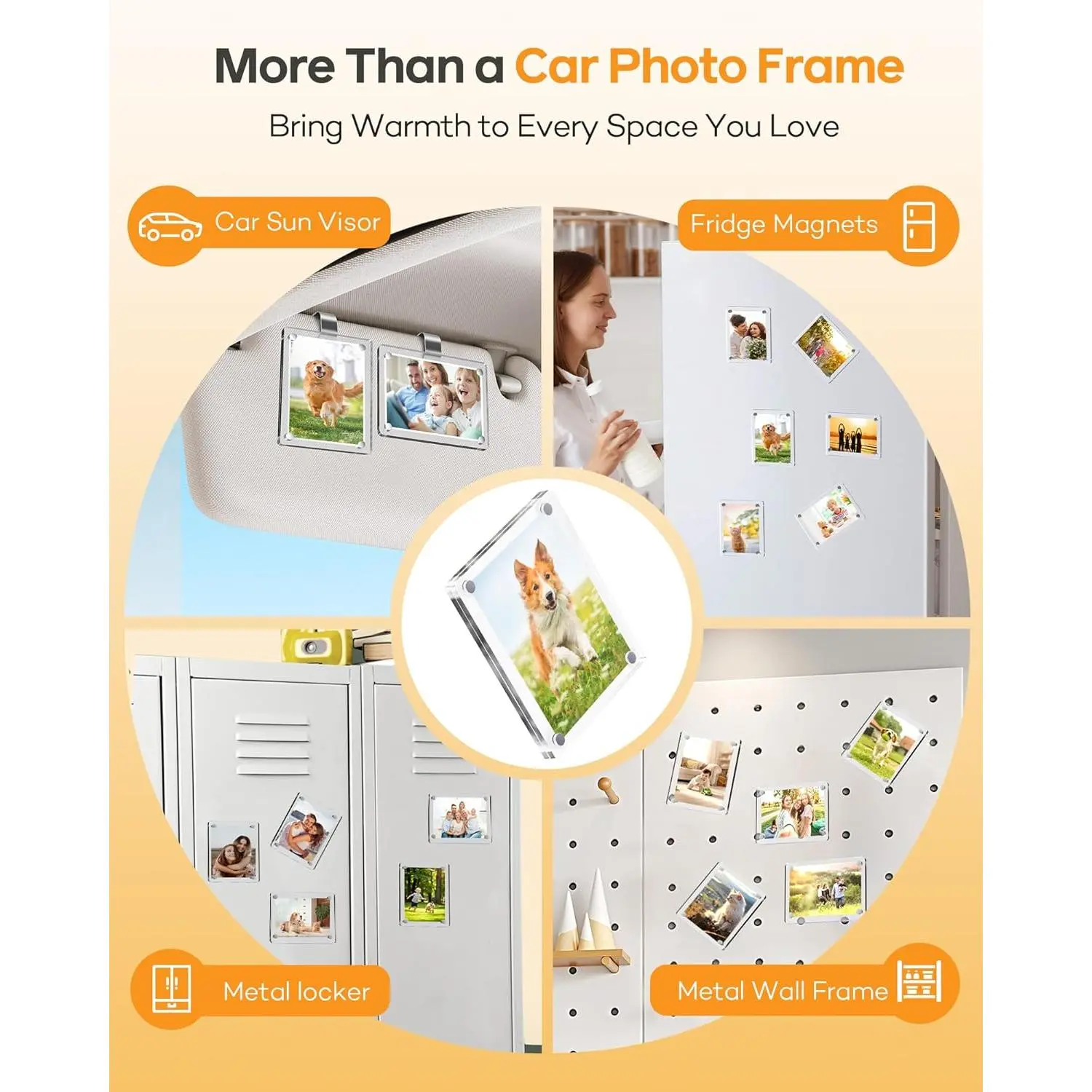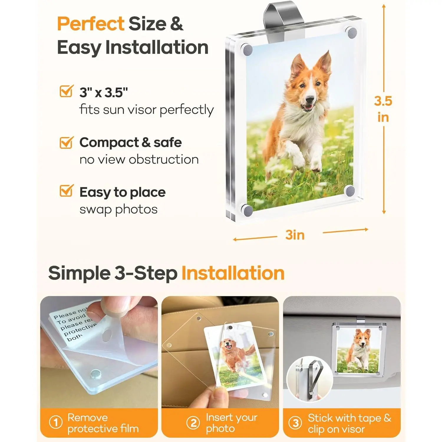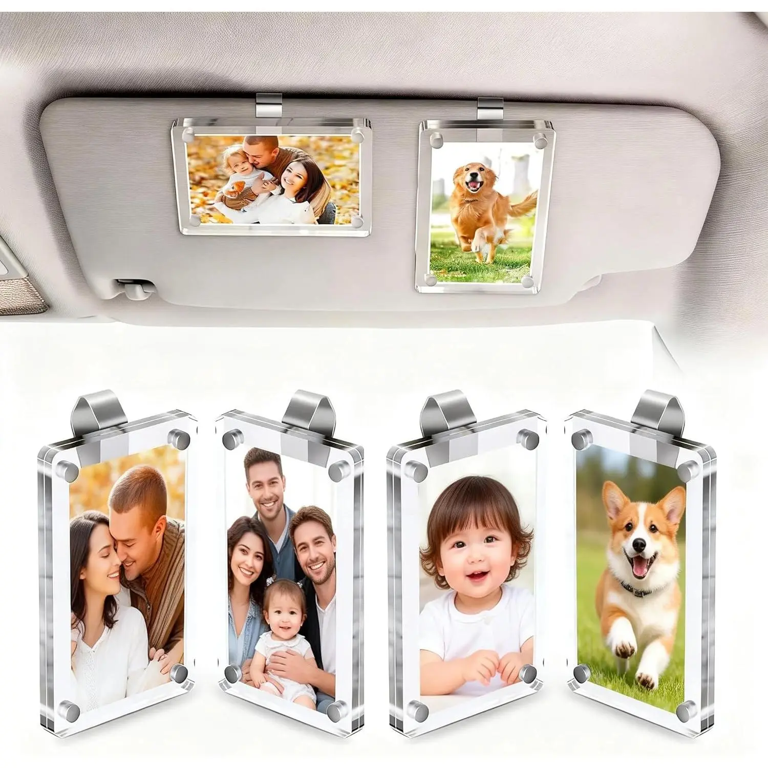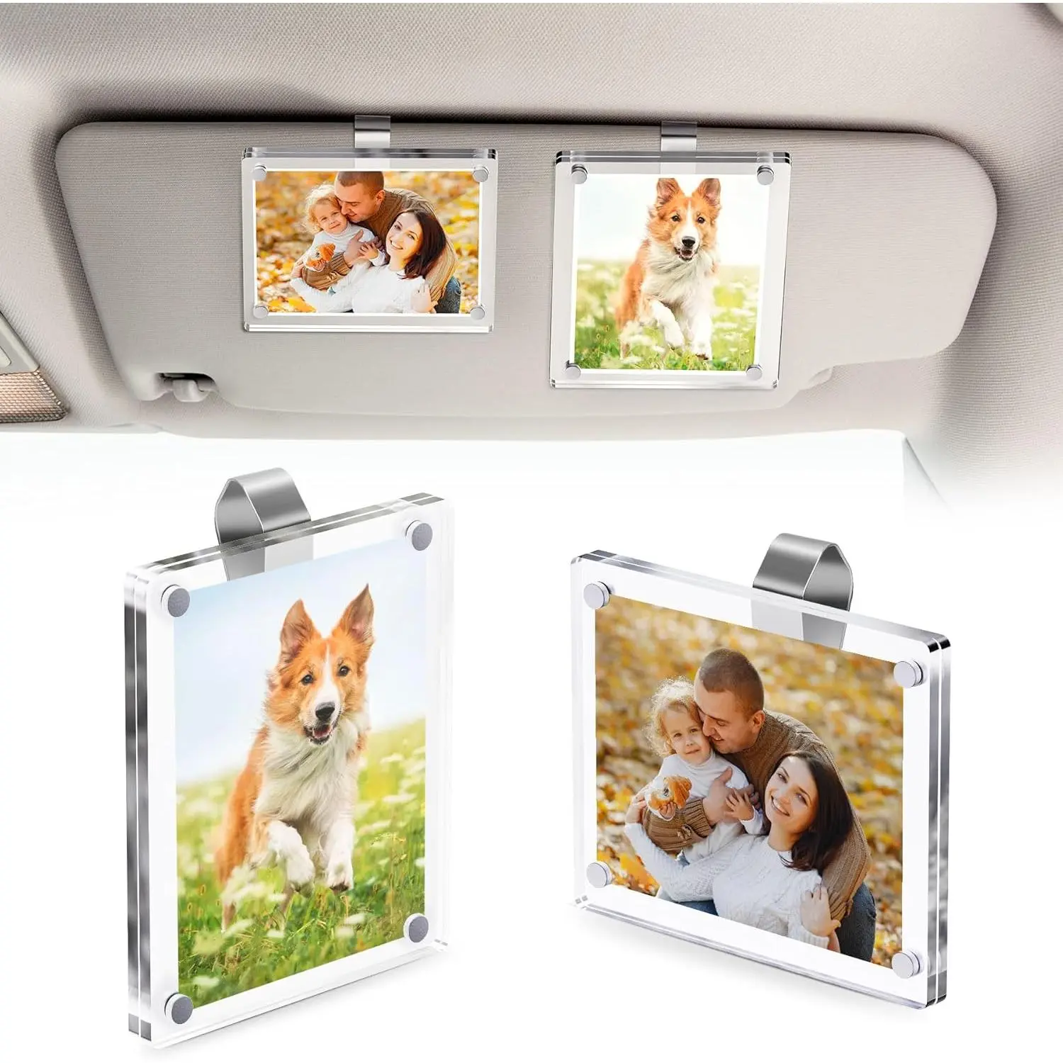 2Pcs Car Visor Photo Clip, 3"x 3.5" Magnetic Square Picture Frame for Car Sun Visor – Clear Acrylic Display for Family or Pet Photos, Easy Clip-On Photo Holder for Car Interior, Auto Accessories Gift for Drivers Mother's Day,Father's Day