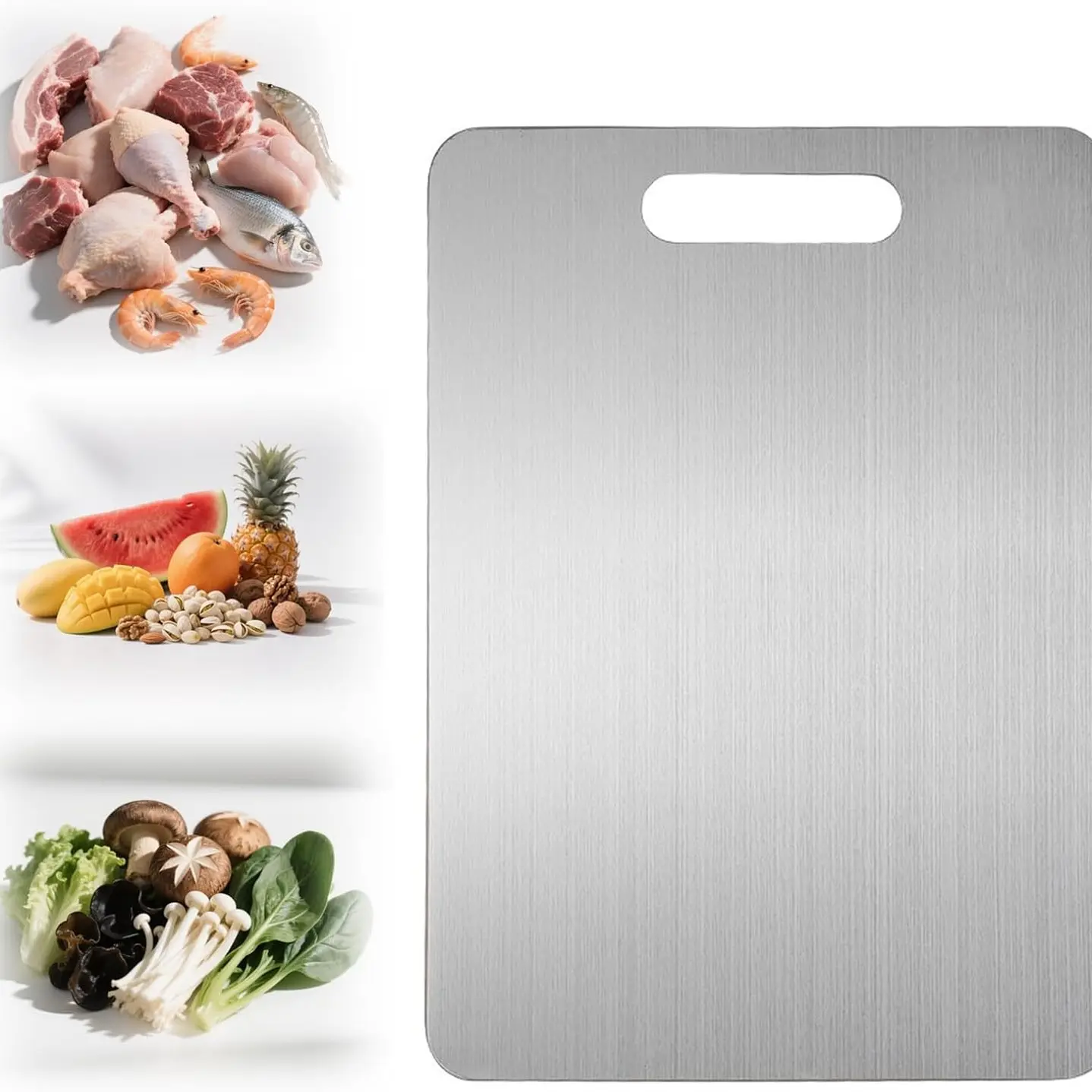 ·316 MEDICAL FOOD - GRADE STAINLESS STEEL: We are made of 316L medical food grade stainless steel, which is a safe and durable material that can withstand heavy-duty chopping, slicing, dicing, and sharp knives. Studies show that if you cut food on a plastic cutting board, you eat on average 50g of micro plastic shavings per year! 316 stainless steel Cutting Board has a healthy surface without any chemicals and won't leave stains or odors even after long-term use.