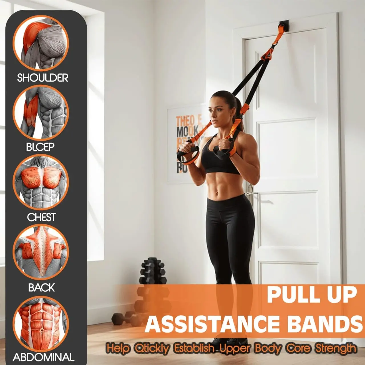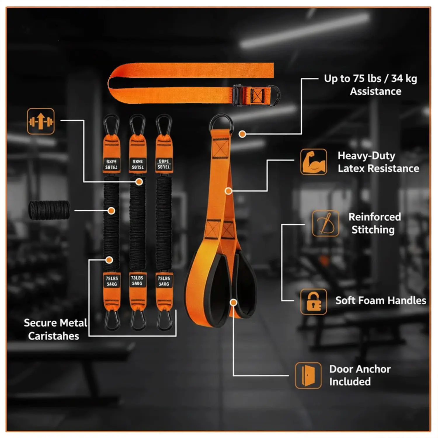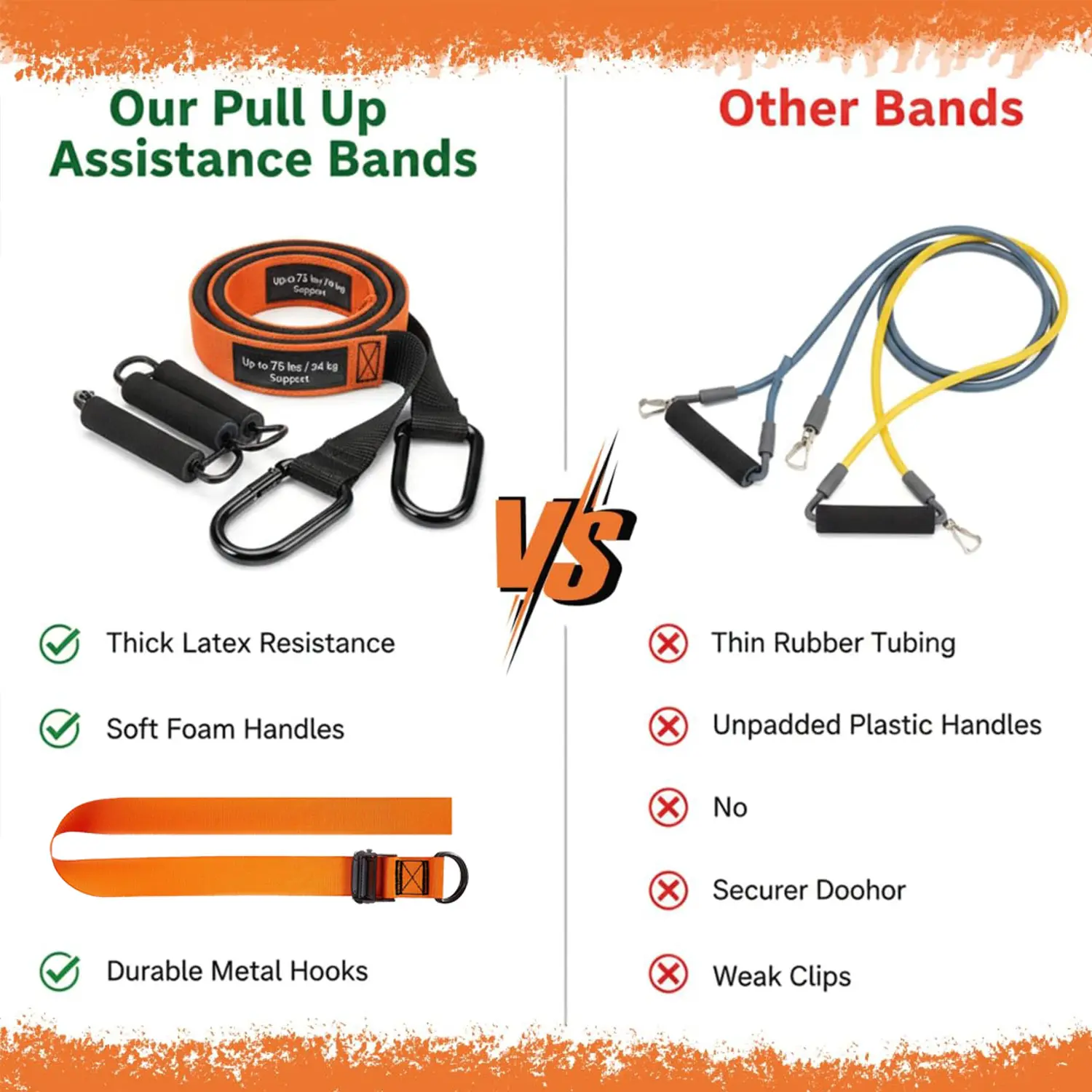 Advanced Pull Up Assist Bands Set - Heavy-Duty 3*75LBS Resistance Adjustable Strap & Wide Footplate for Home Gym Outdoor Exercise- Workout Strength Training Equipment