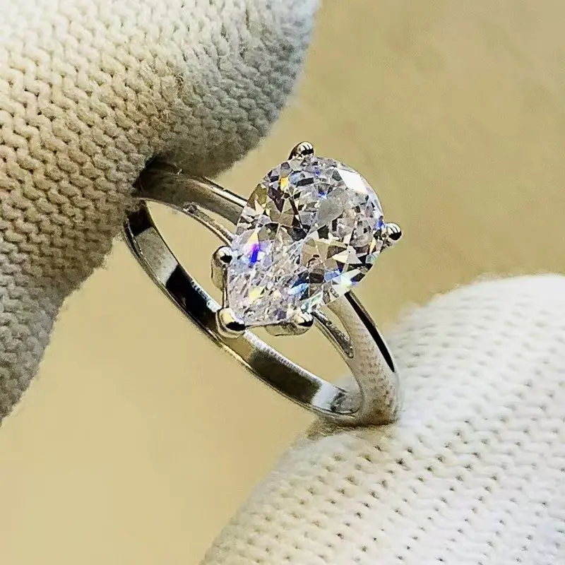 #36 (Pear Cut 2CT) 925 Sterling Silver Synthetic Moissanite Ring