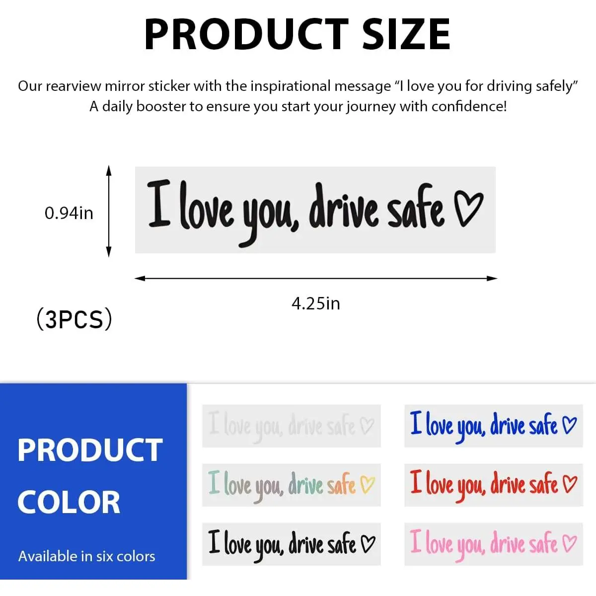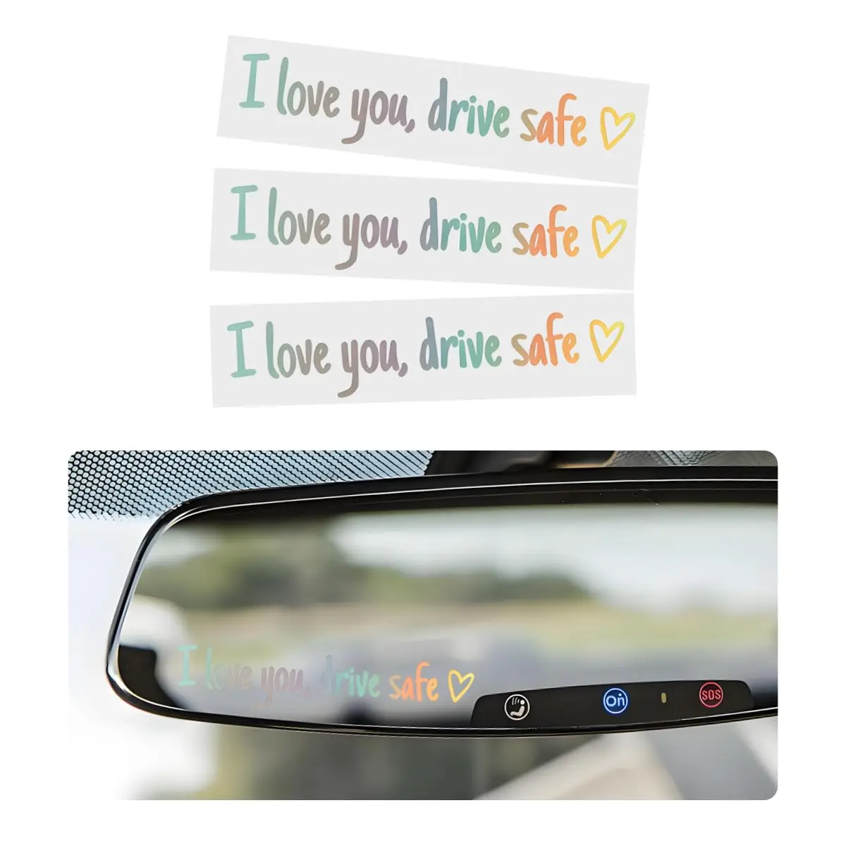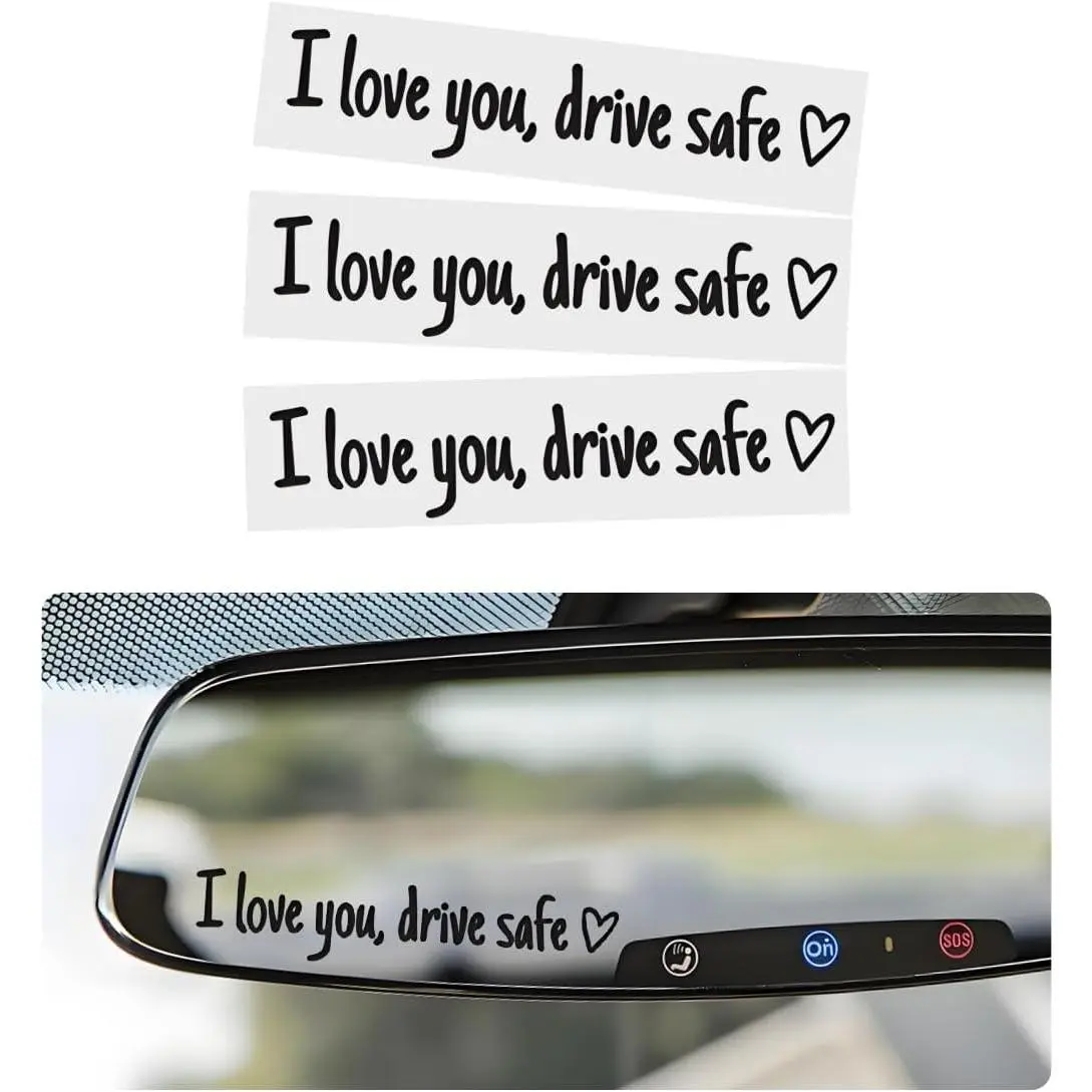 3 PCS I Love You Drive Safe Sticker, Funny Waterproof Car Rearview Mirror Decal with Heart, Self Affirmations Sticker with Drive Safe Letters for Car Window Bumper Women Gift (Black)
