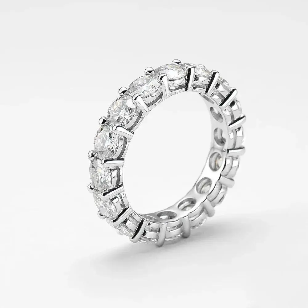 FEOBUR 5mm D Color Moissanite Ring with Certificate Women S925 Sterling Silver Full Diamond Wedding Eternity Band Jewelry Gift