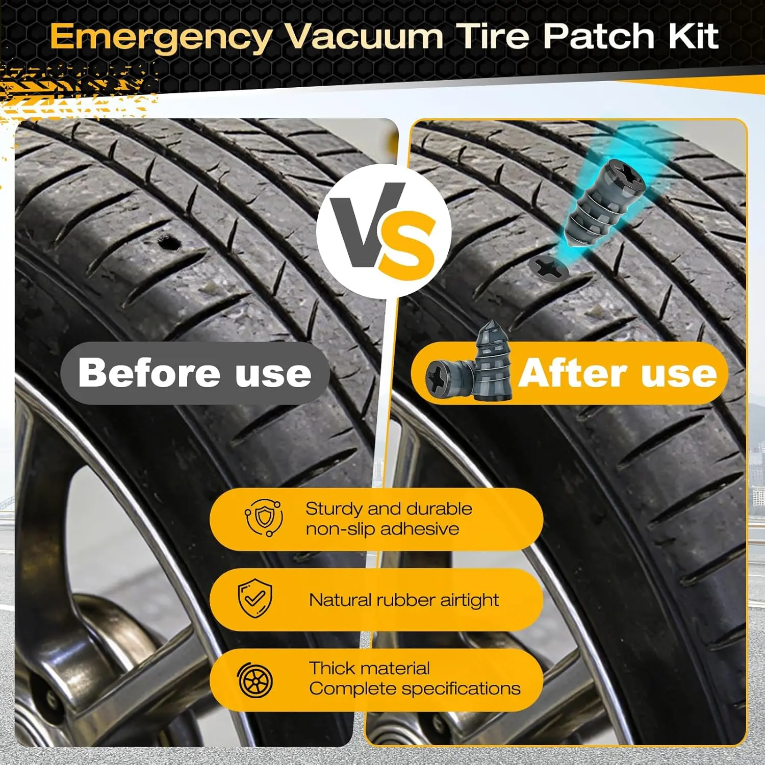 2026 Upgraded Rubber Tire Repair Rubber Nail kit, 30 PCS Self-Service Emergency Tire Repair Kit with Screwdriver for Car, Motorcycle, Truck, Tractor Tire Puncture Repair