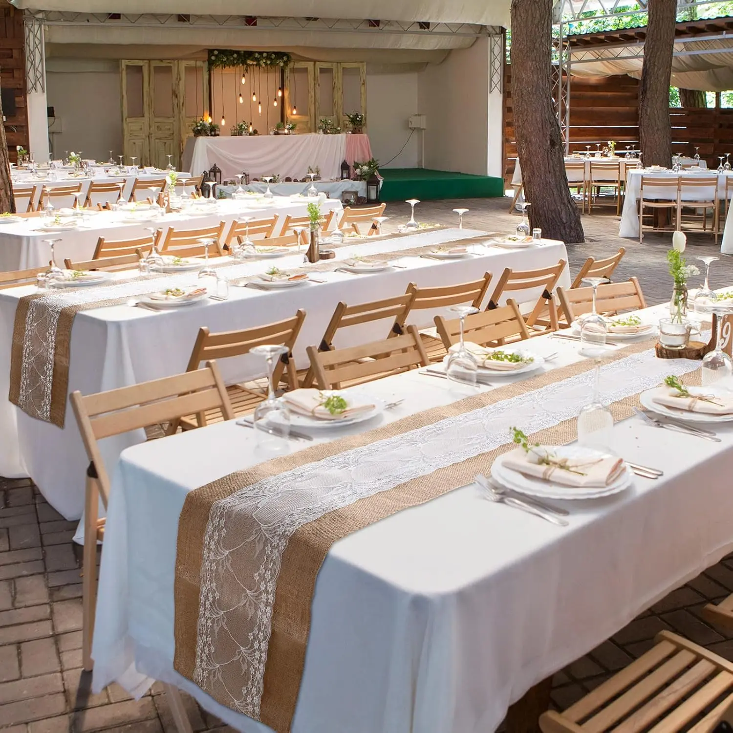 Delicate Design: combining vintage burlap with modern stylish white lace, the width of the lace, the burlap lace table runner is sophisticated and elegant, it will be an ideal match for rustic and modern themes for your wedding or other special occasion