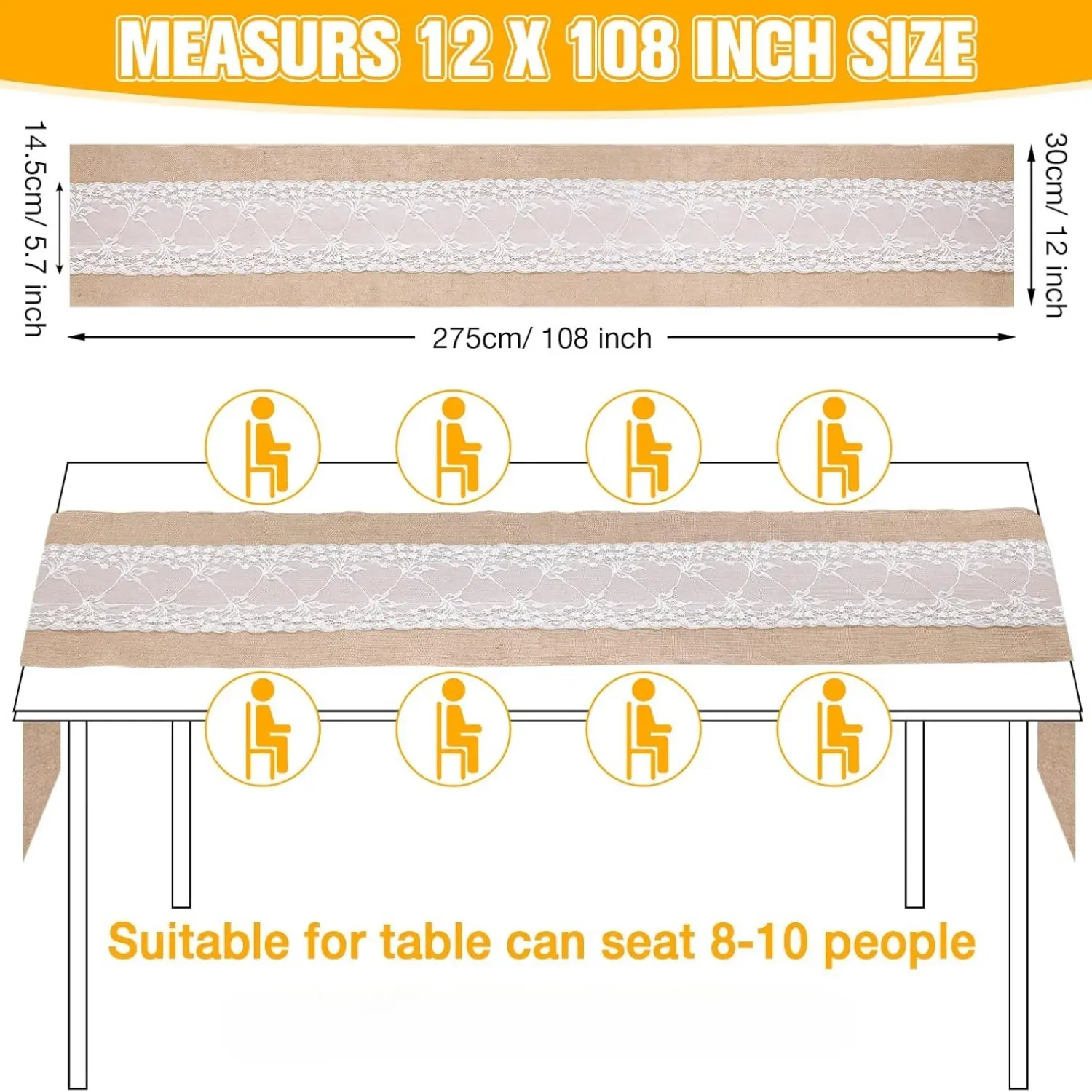 Wide and Long Size: the burlap table runner measures approximately 30 x 275 cm/ 12 x 108 inches, making it wide enough to fit most banquet tables and long enough to extend to the edging of tables; It can be cut to desired length as a gift bow, garland, or ribbon floral centerpiece as well