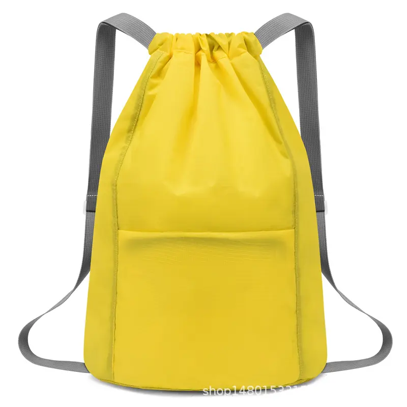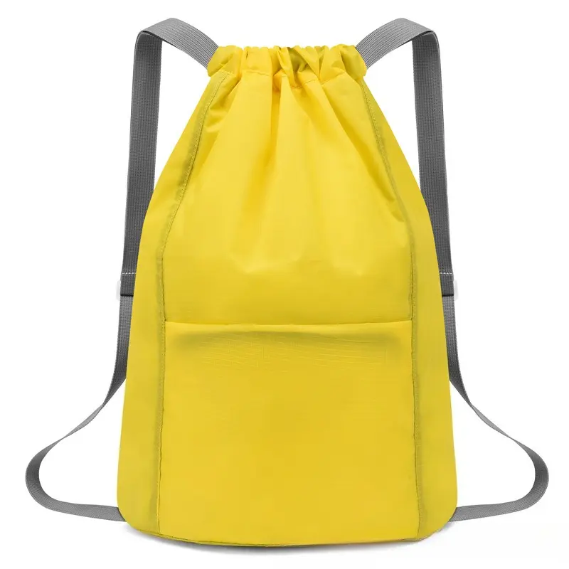 The classic drawstring closure allows for quick access and easy opening/closing, while the adjustable shoulder straps provide a customized, comfortable fit for all body types. A dedicated front pocket offers extra storage for small essentials like phones, keys, or wallets, keeping your items organized and within reach.