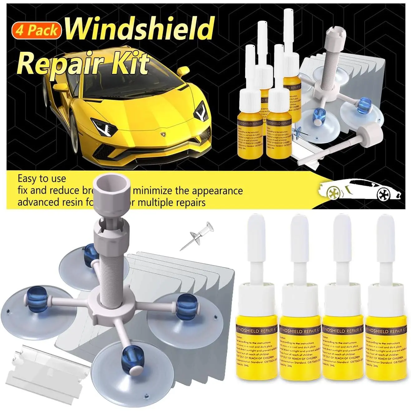Upgrade Recipe: The upgraded version of glass repair fluid, the shear strength can reach 20P--A, even if the glass is broken, it will not affect the repair position. Enhanced injection head, and unique vacuum design, push the windshield repair resin into the crack, which can prevent air from entering between the gels and affect the repair effect. cracked windshield repair kit can pressurize the resin for better penetration into chips or cracks.