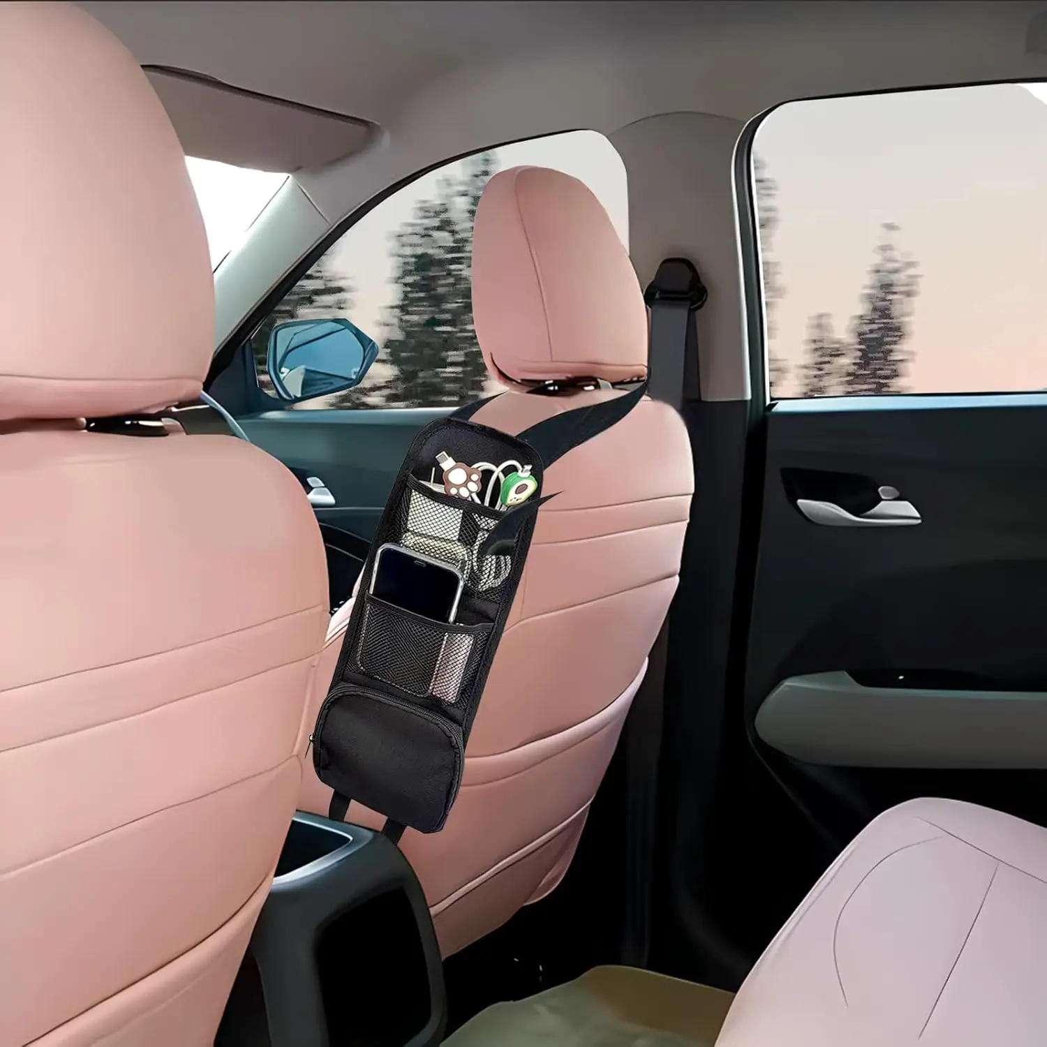 Multifunctional: Our multifunctional car seat organizer hanging bag can store or organize a lot of small things, such as wallets, mobile phones, charging cables, change, soda, etc.