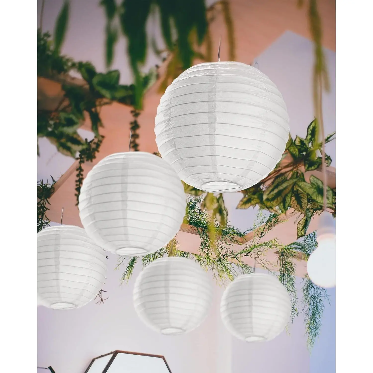 30 Pack White Chinese Japanese Paper Lanterns, Decorative Round Hanging Ball Paper Lantern Lamps, Reusable Hanging Ornaments for Wedding, Birthday, Party and Home Decor, 6 Inch