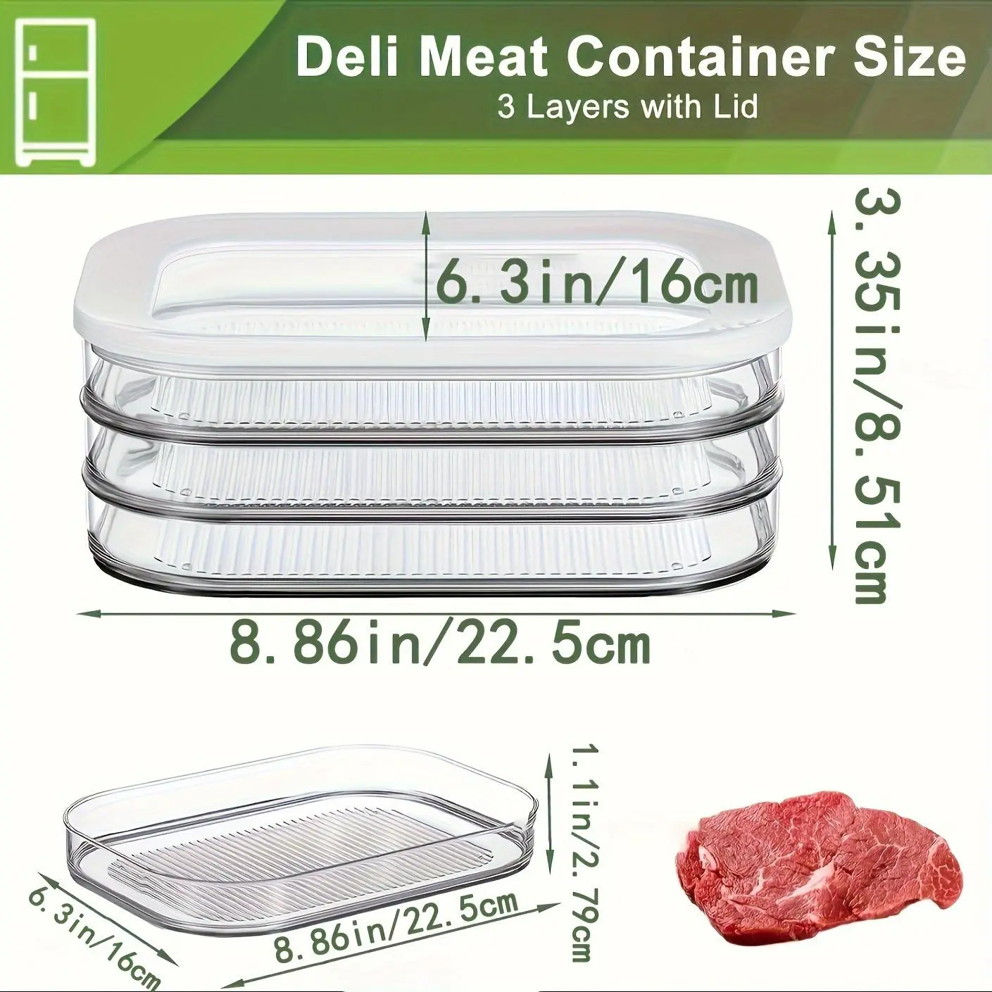 [Stackable Design]: This three-layer stackable food storage organizer maximizes fridge space while keeping meats and cheeses neatly stored.