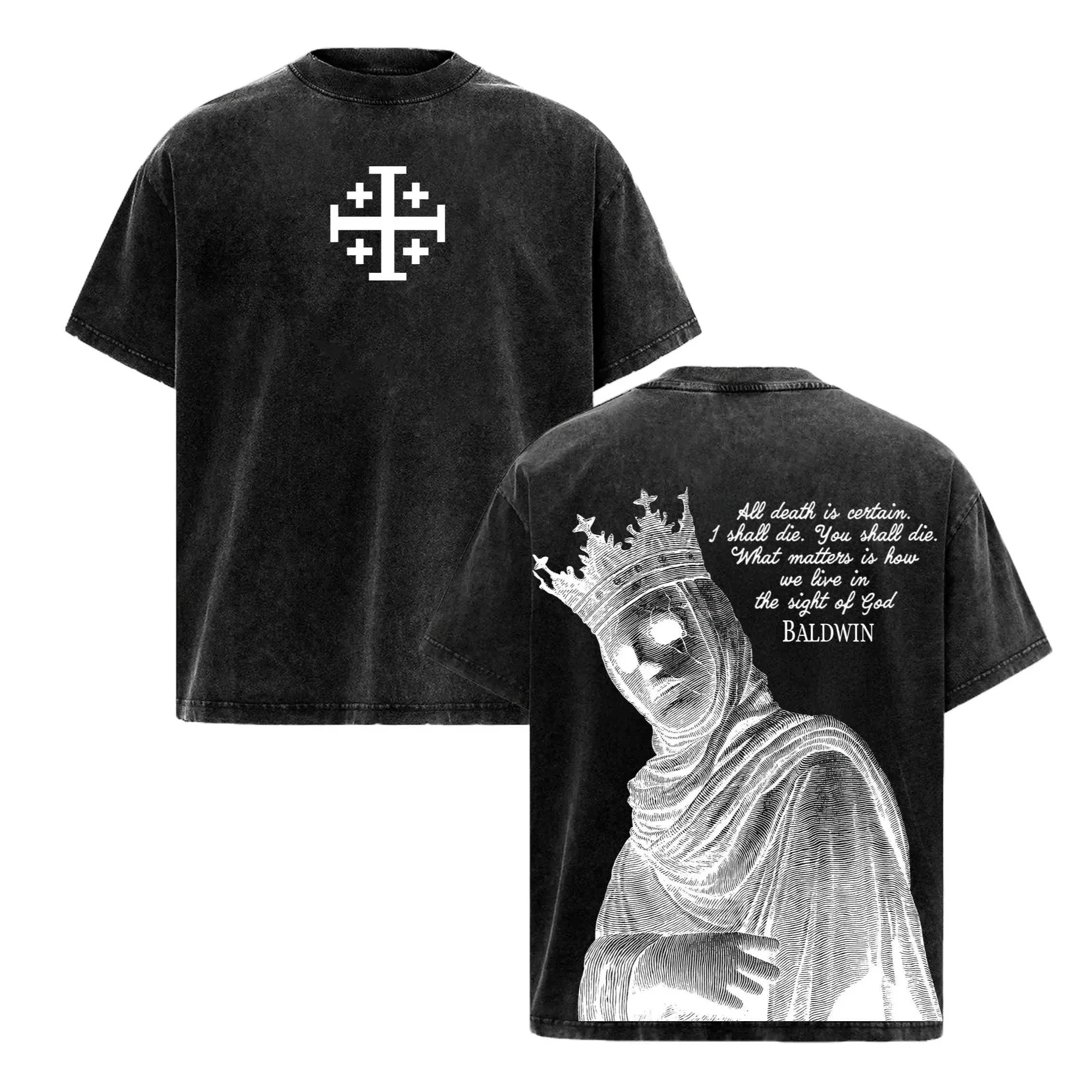 Baldwin IV The Leper King T-Shirt, Tank Top & Hoodie Washed Crusader King of Jerusalem Tee, Jerusalem Cross Medieval Christian Shirt, Vintage Washed Gothic Faith Streetwear - Jesus Apparel - Christian Outfit