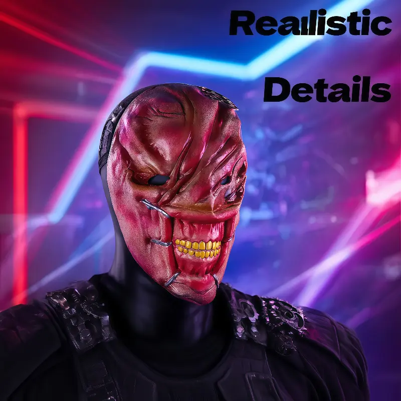 The mask is made from highly elastic soft latex; it’s skin-friendly, breathable, and doesn’t trap sweat. It fits most adult head sizes and provides no pressure even during prolonged wear. It includes a viewable area around the eye sockets to preserve the scary design while ensuring clear visibility—balancing scary aesthetics with practical wearability.