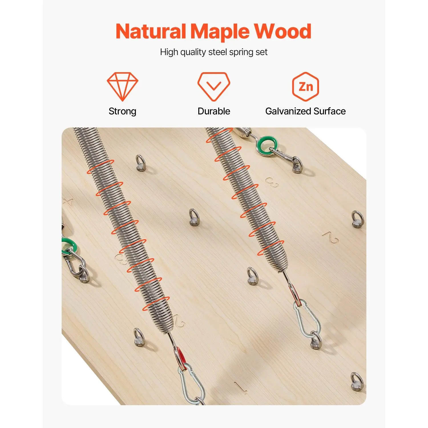 The yoga fitness trainer uses high-quality springs with 8 adjustable resistance levels, including a mix of heavy, medium, and light springs. It also features 5 adjustable foot hooks and 10 adjustable pegs on the board, allowing for customized workouts.