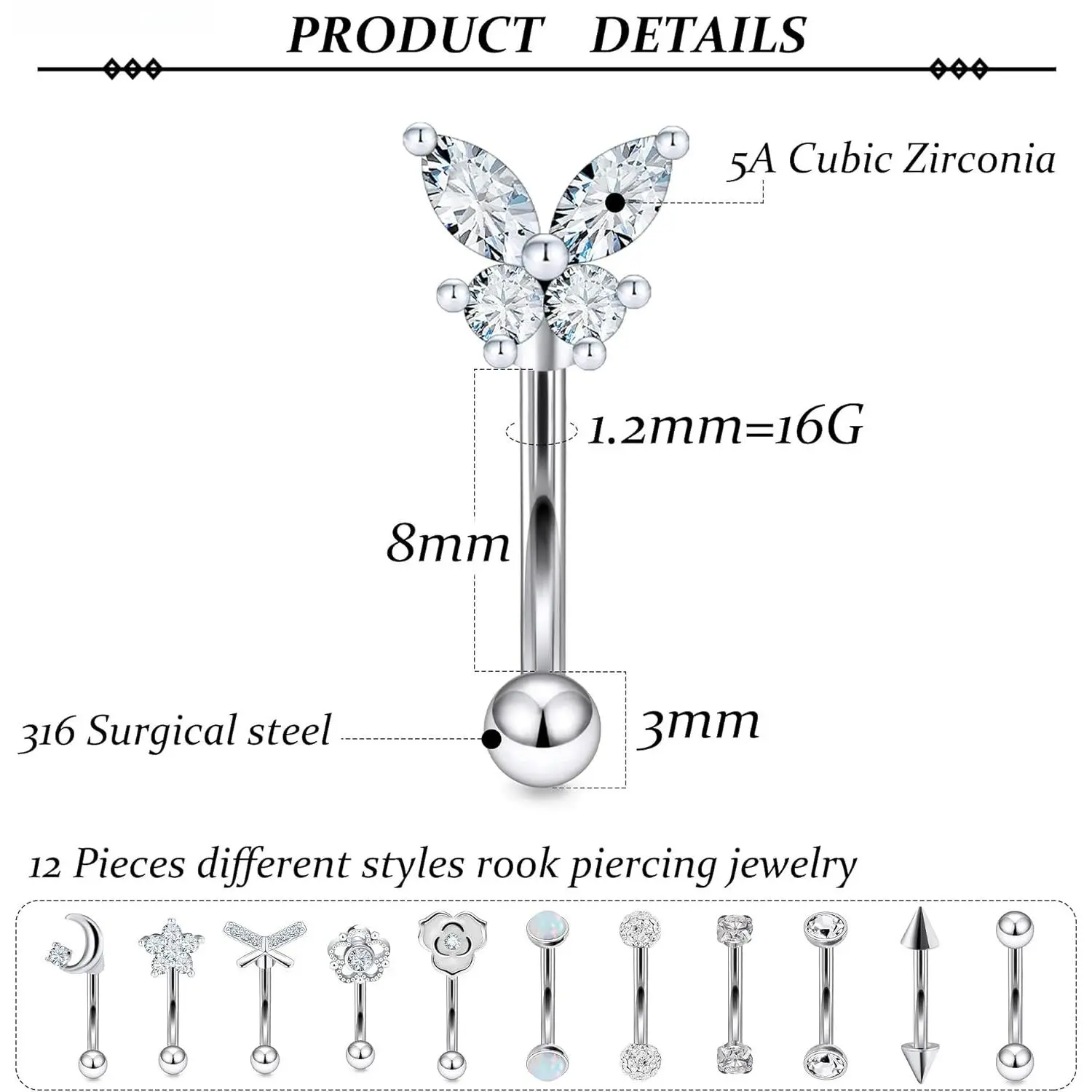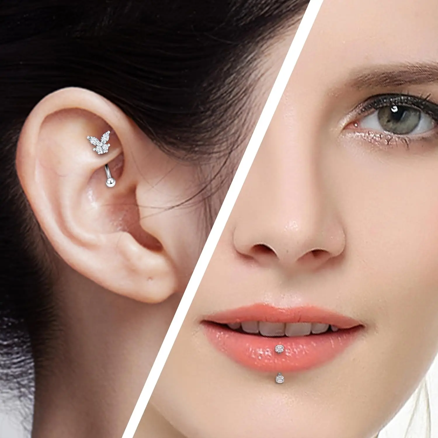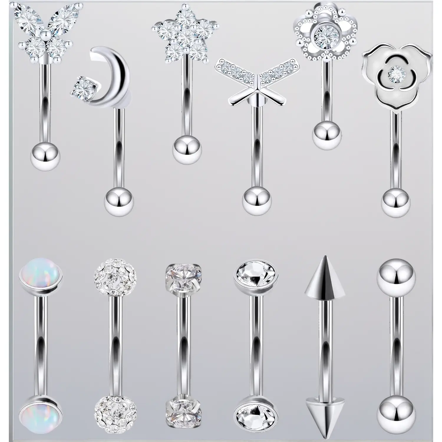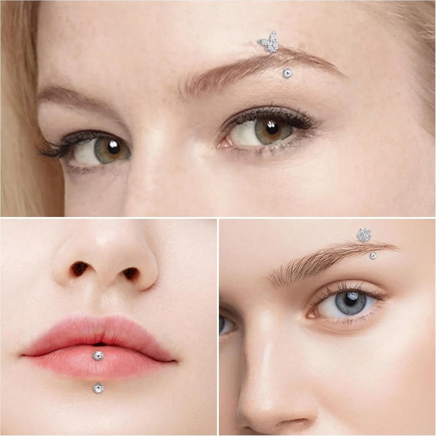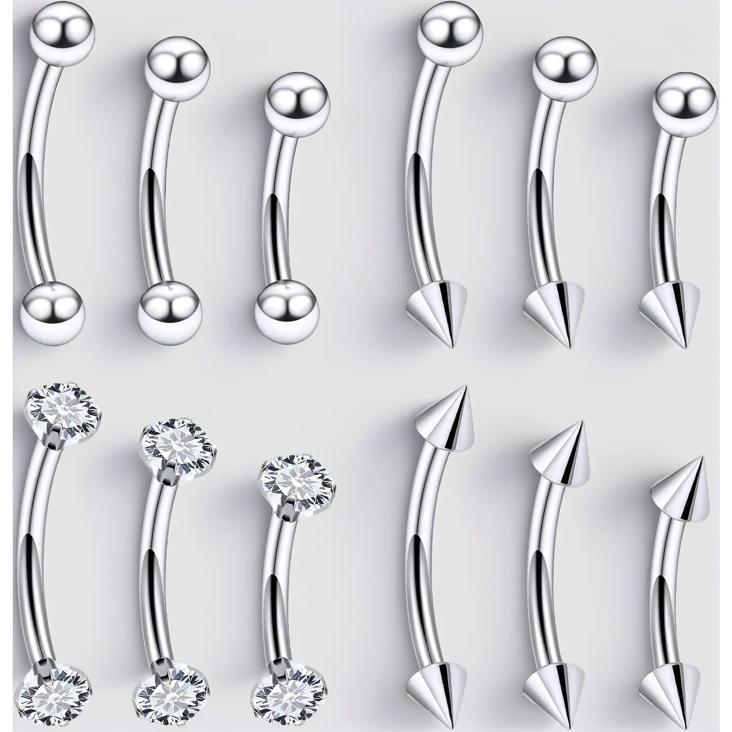 16G Curved & Straight Barbells for Eyebrow & Lip - 6MM, 8MM, 10MM Surgical Steel. Hypoallergenic Piercing Jewelry for Vertical Labret, Helix. Internally Threaded, for Men & Women