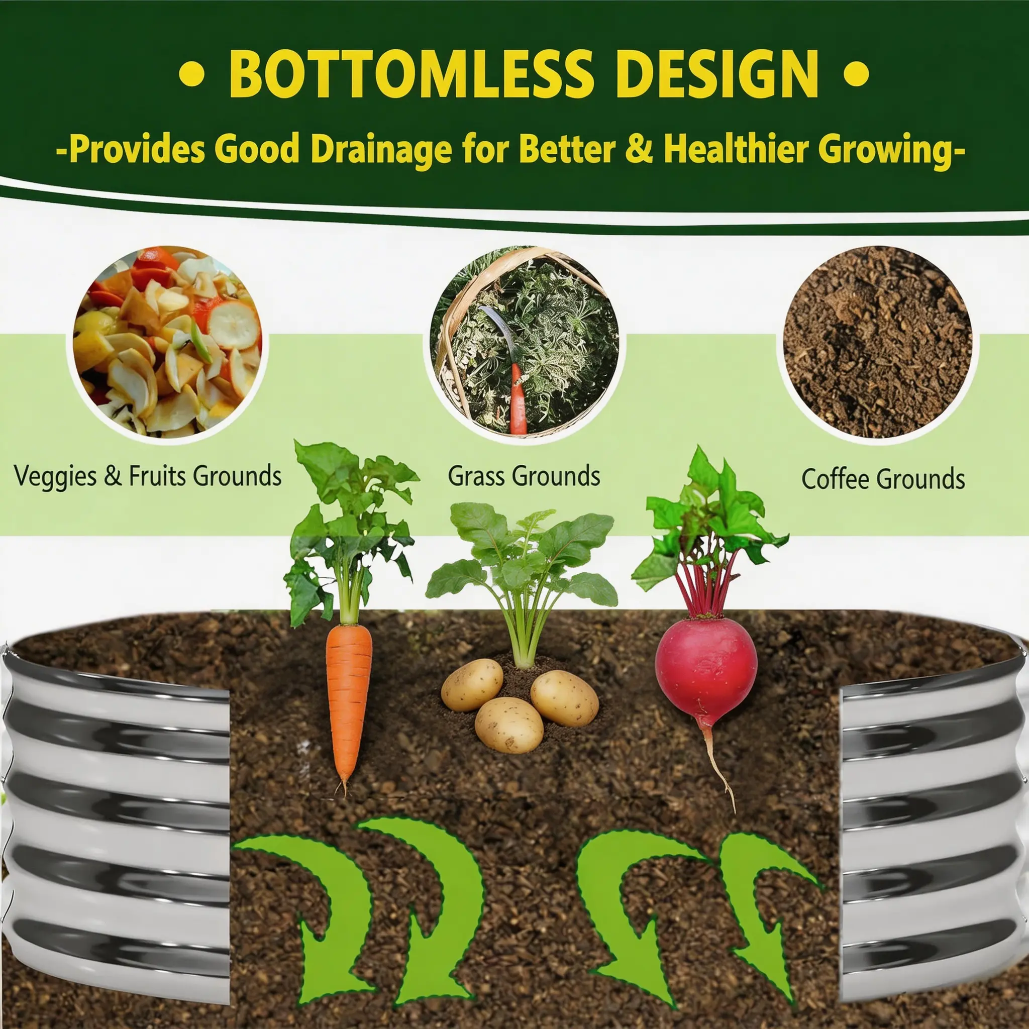 The open-bottom design allows for superior drainage, preventing waterlogging and root rot. It promotes excellent soil aeration, encouraging stronger root development and more vigorous plant growth.