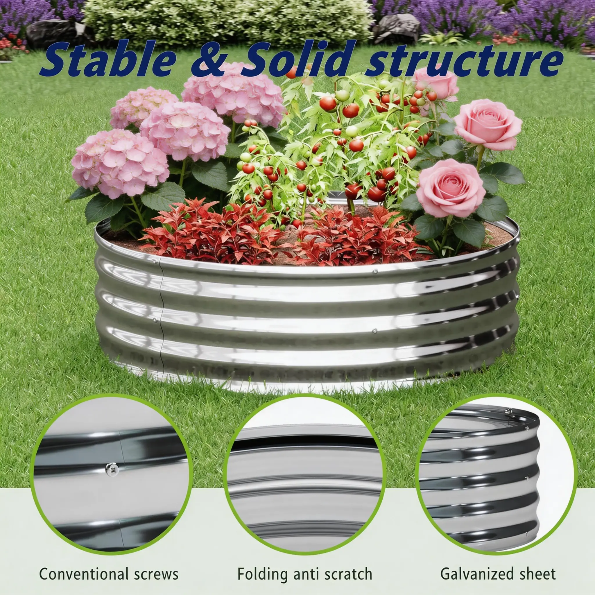 Constructed from corrosion-resistant galvanized steel. Critical stress points at the corners and frame are specially reinforced, ensuring exceptional stability and durability for years of reliable use in any weather.