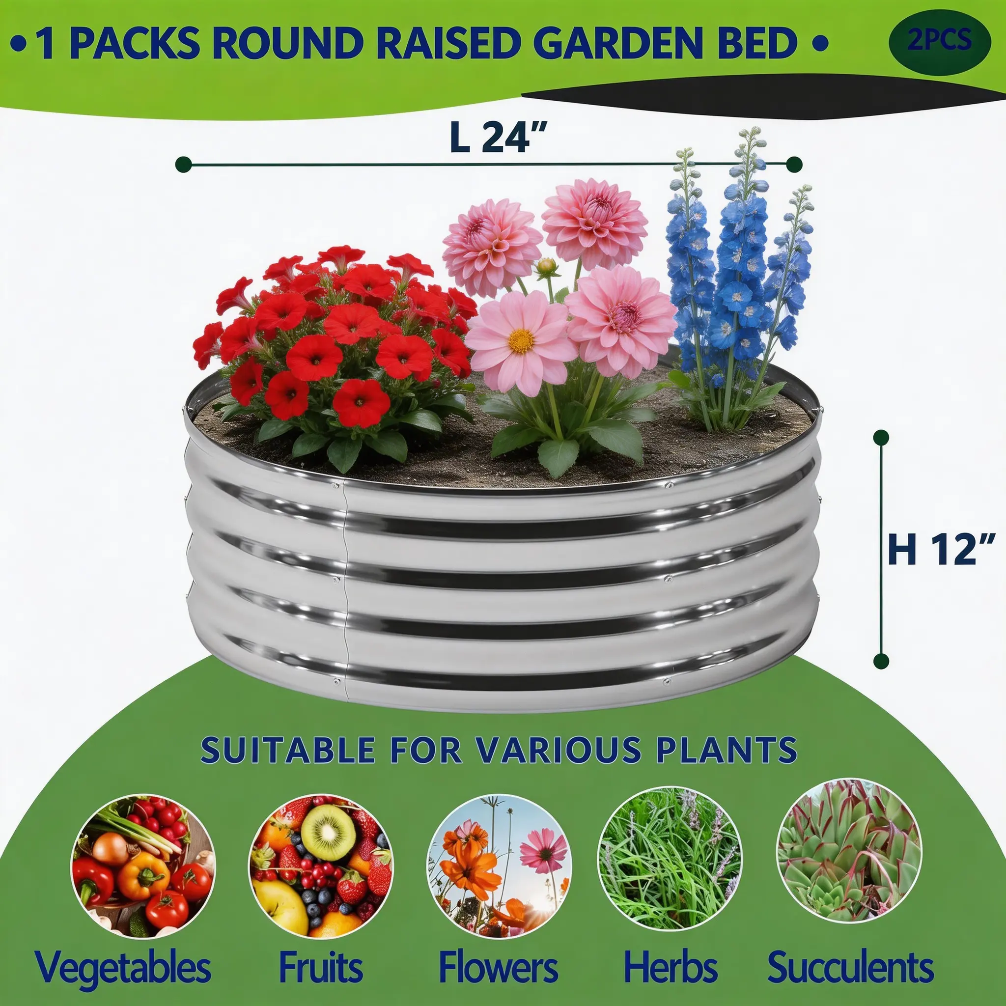 ·Each bed offers a generous 2×2 ft (24"L x 24"W) footprint with a 12-inch (1 ft) depth, providing ample room for deep-rooted vegetables, vibrant flowers, and aromatic herbs. The elevated design brings the garden to you, eliminating back strain.