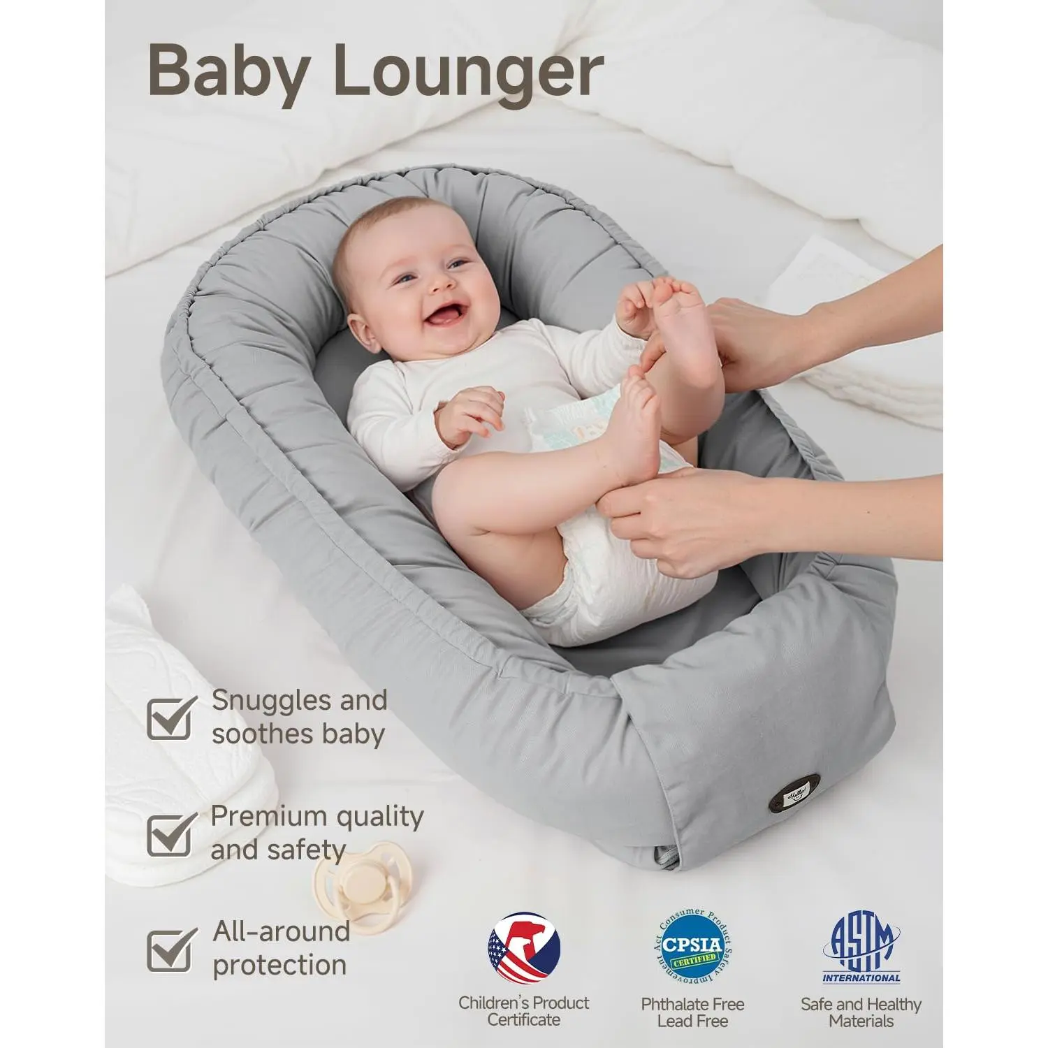 Baby Lounger, Adjustable Baby Lounger for Newborn 0-24 Months, Breathable & Soft Infant Lounger,Tummy Time Lounger for Home and Travel,Baby Girls & Boys Babies Stuff, Mother's Day Gift for Her, Grey