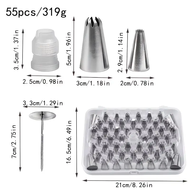 All tips are made from 100% food-grade stainless steel, rust-resistant, reusable, and dishwasher-safe. They’re built to last through hundreds of bakes, so you never have to replace flimsy plastic tips again.