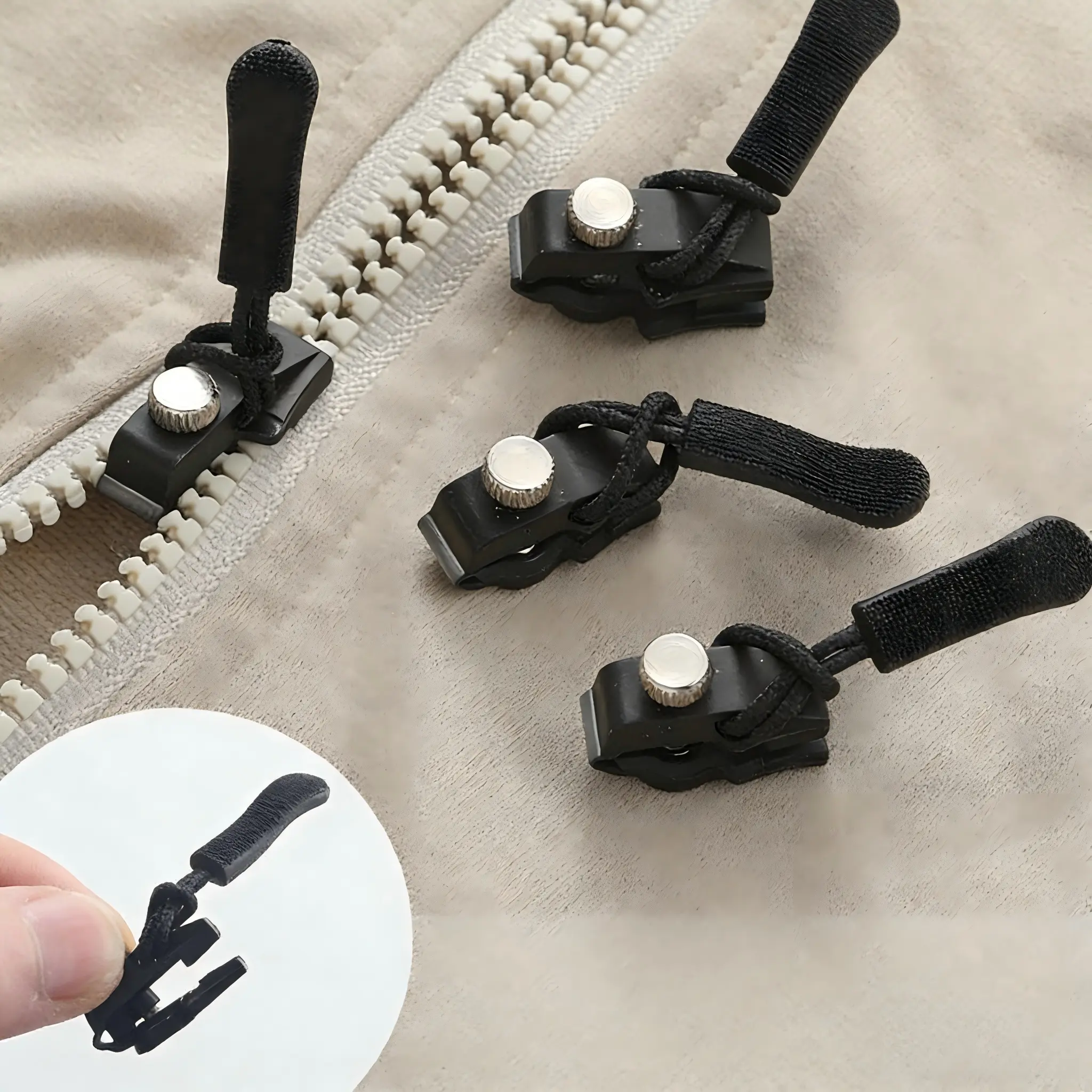 This game-changing set includes 9 zipper pulls in 3 different sizes (3 small, 3 medium, 3 large), designed to fit any zipper on jackets, coats, bags, luggage, purses, tents, and more.No sewing, no tools, no professional help needed - just clamp the pull onto your existing zipper track, tighten the screw, and your zipper is good as new in 10 seconds flat!