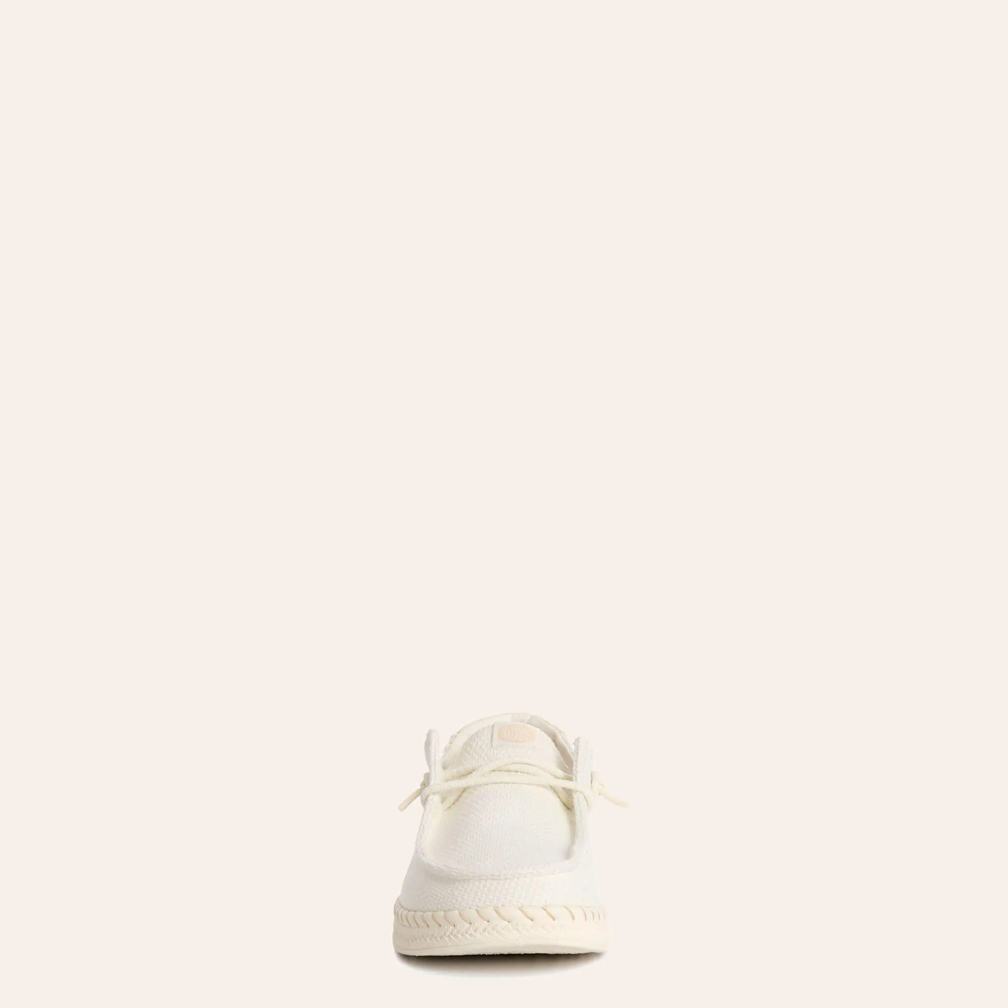 The Most Important Thing to Know: The Wendy white espadrille shoes bring a fresh twist to a beloved silhouette with beachy charm and modern detail. These women’s shoes are the ultimate blend of comfort, versatility and standout design, and they will quickly become a staple in your closet for everyday wear. The white Wendy slip-on Hey Dudes are perfect for the girl who wants to look put together in every step she takes.
