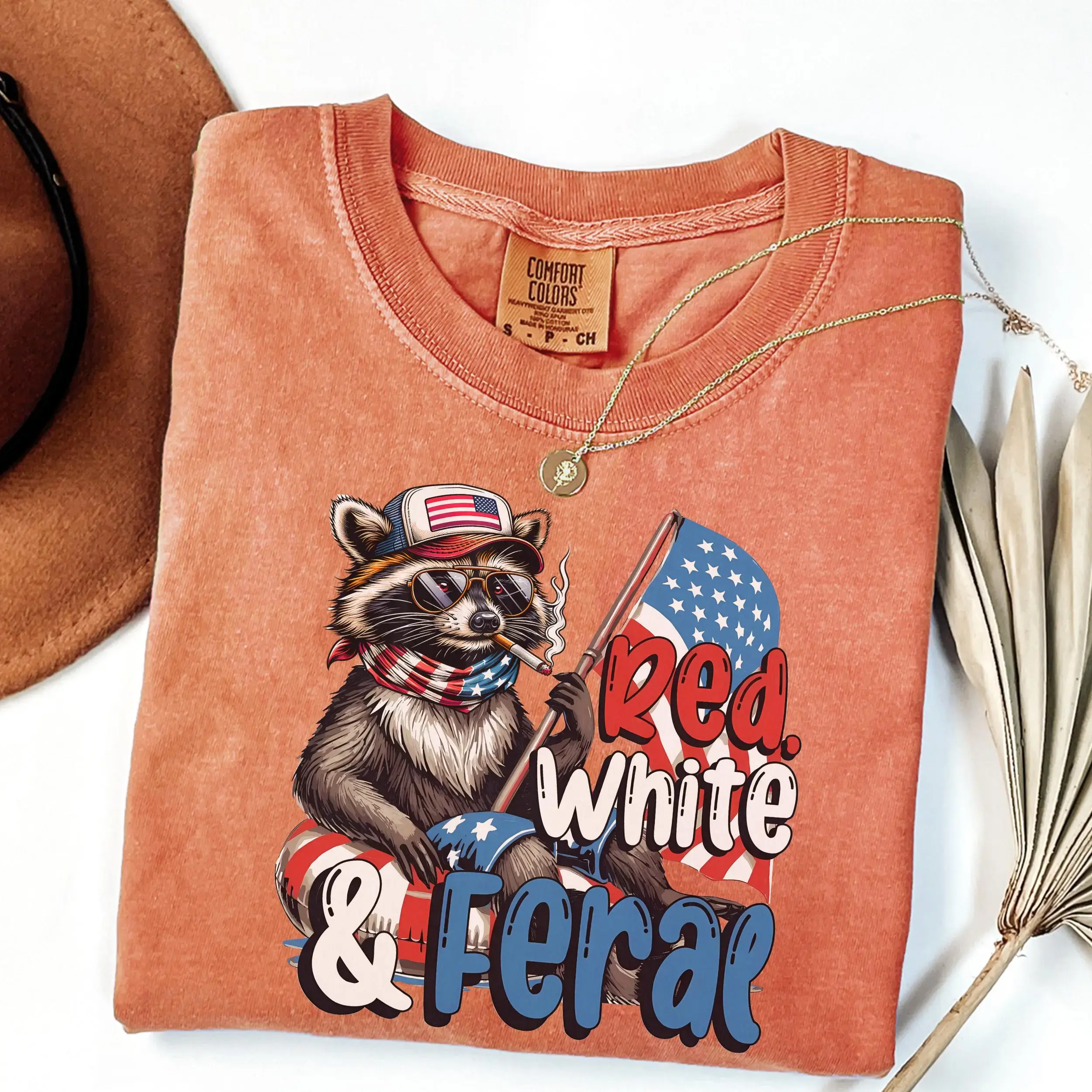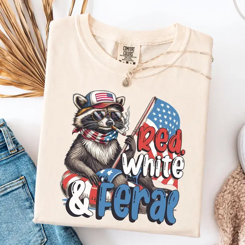 Comfort Colors Red White Feral Raccoon T-Shirt, Funny Patriotic Tee, 4th of July Independence Day Shirt, Funny Graphic T-Shirt