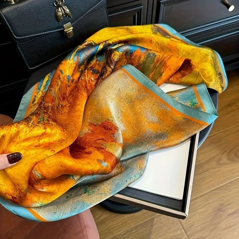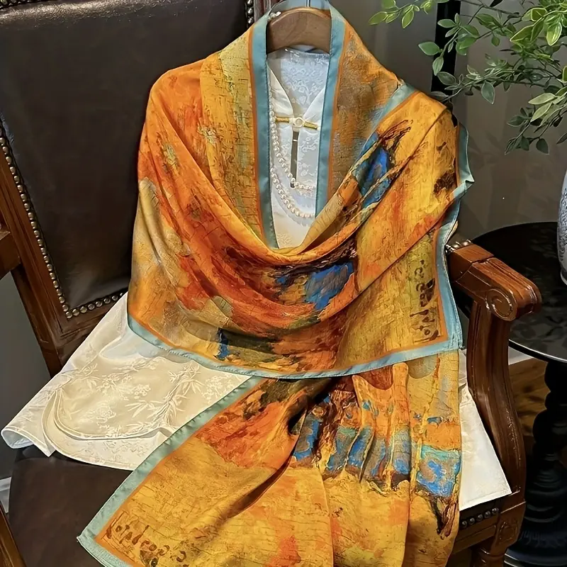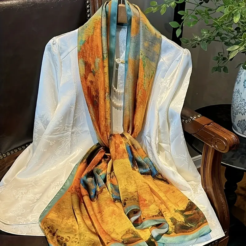 Women's 100% Silk Scarf - Lightweight and breathable, featuring a vibrant autumn leaf pattern, the long shawl is ideal for stylish layering, a great gift for mom, and a versatile and elegant accessory