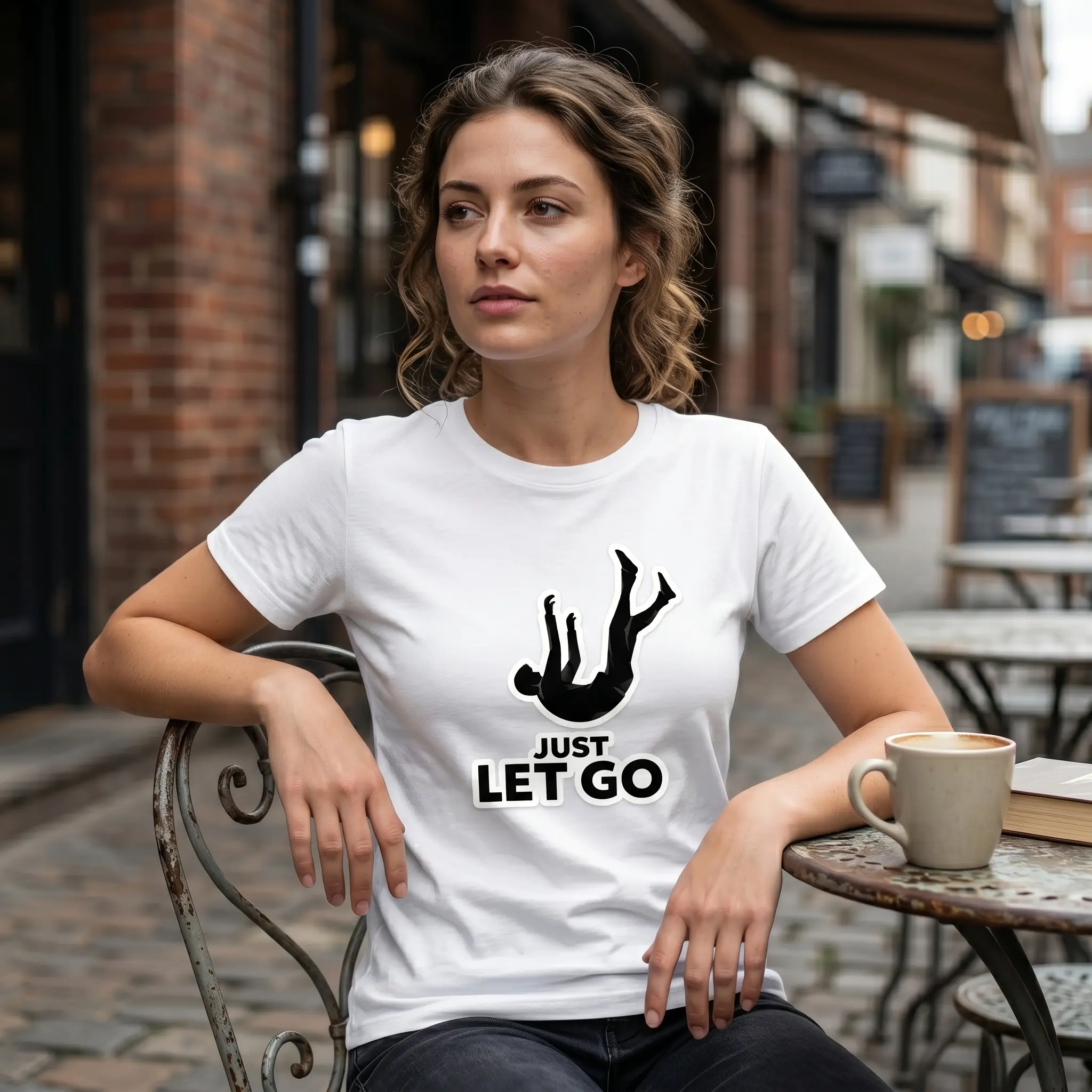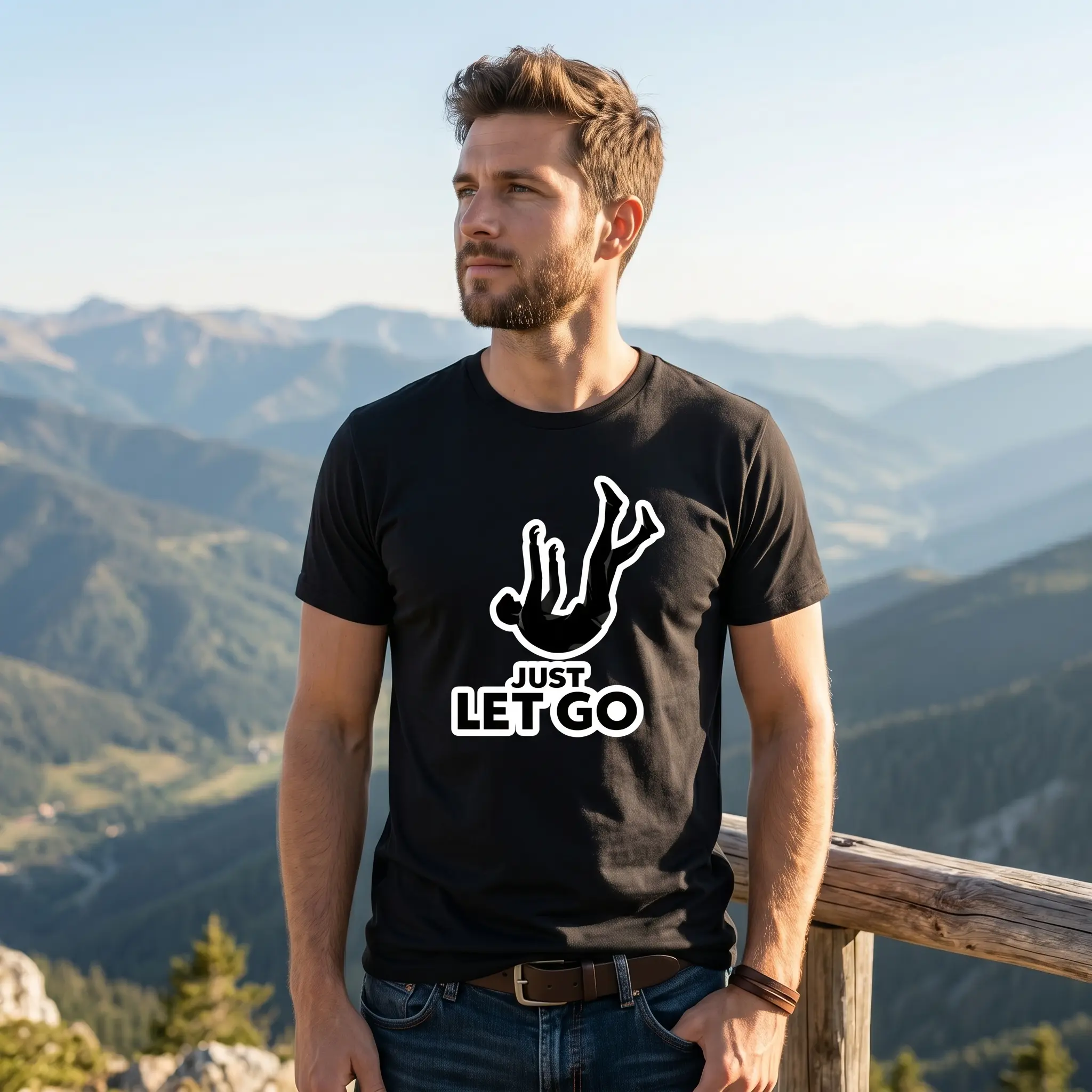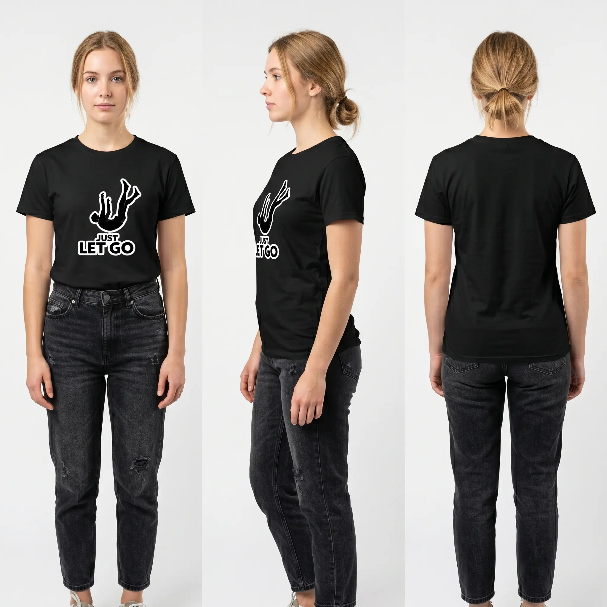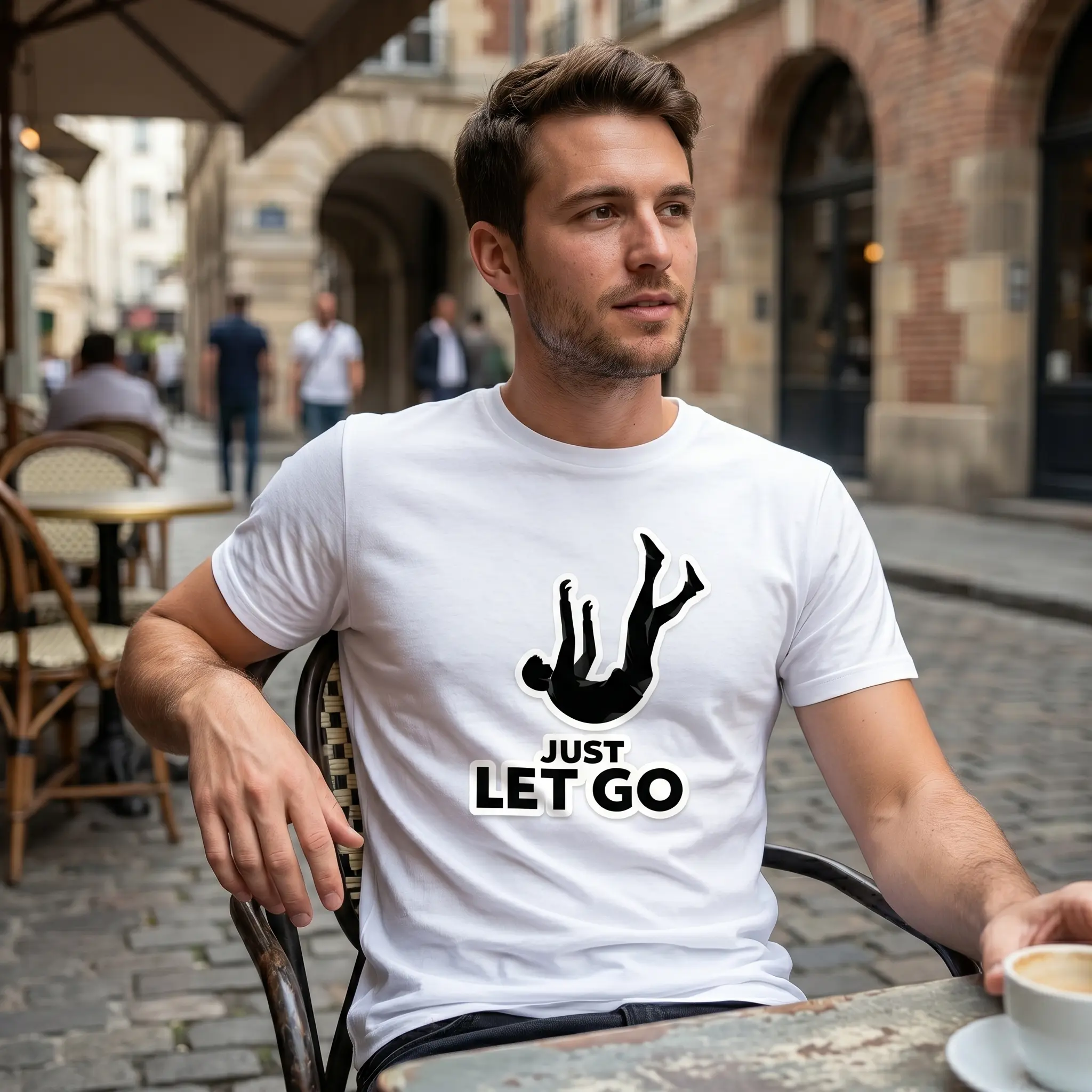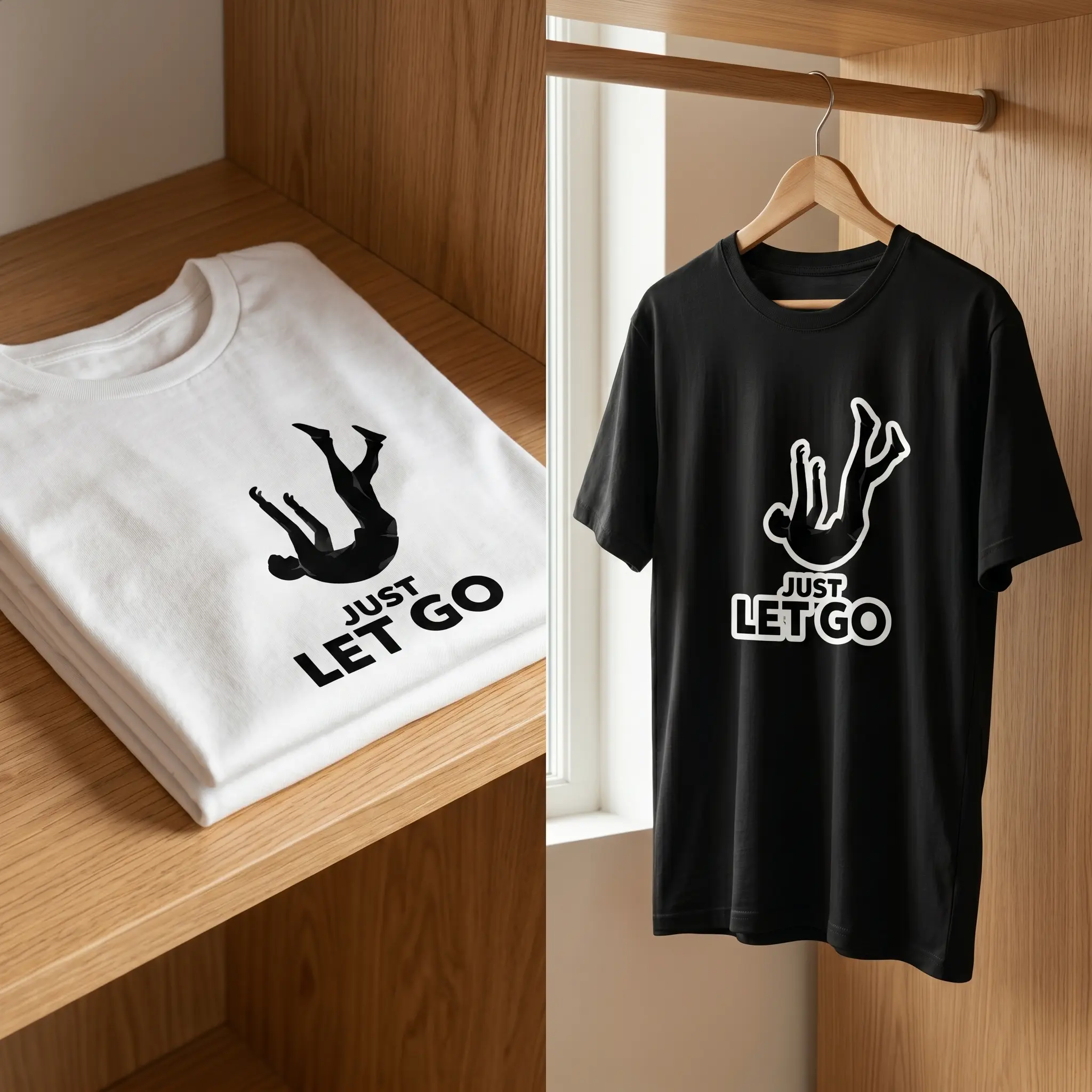 Unisex Cotton Oversized T-Shirt Funny Meme Graphic Print JUST LET GO Falling Silhouette Design Casual Streetwear Relaxed Vibes Tee for Everyday Wear