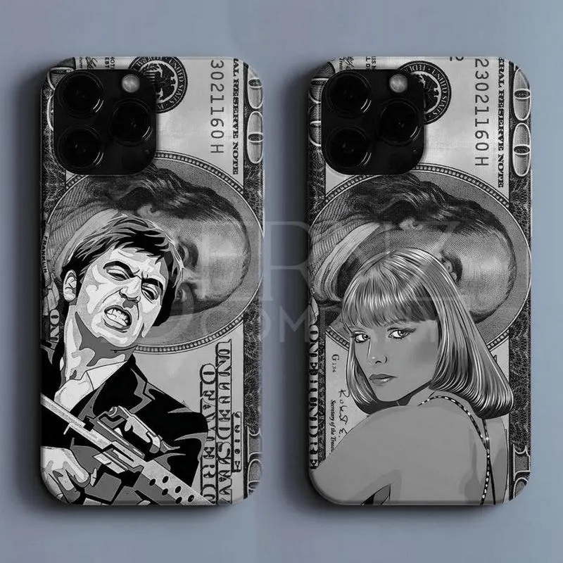 Tony Montana Dollar Couple Phone Case, Scarface Lovers Money Design, Al Pacino & Elvira Phone Cover for iphone