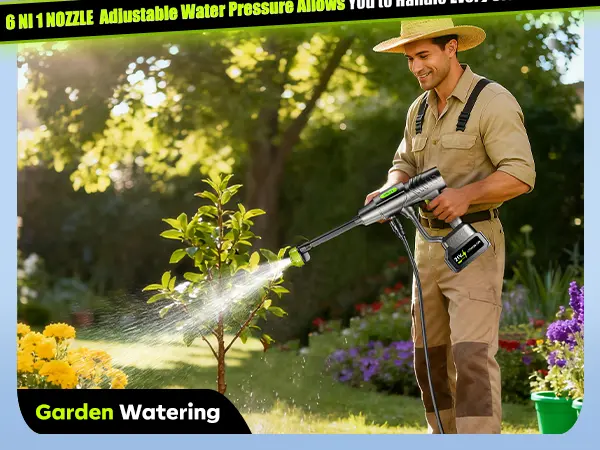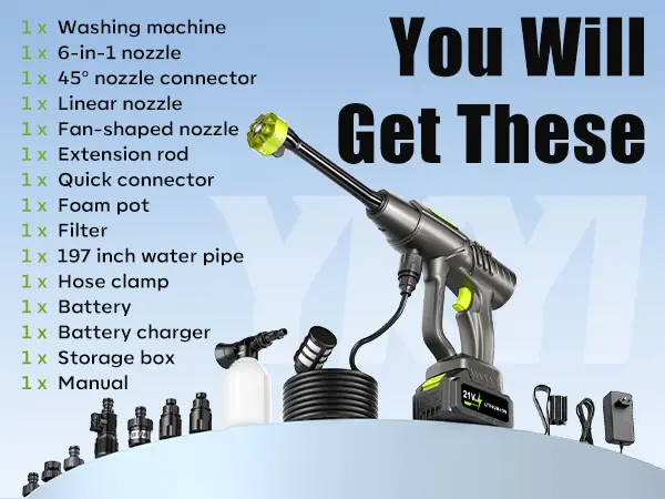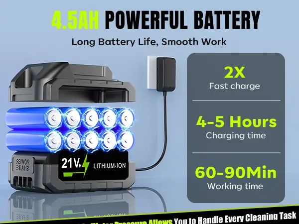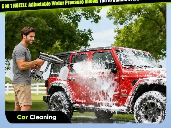 SEESE Portable 21V Cordless Pressure Washer Compact Power Washer for Car Patio & Garden Cleaning with Accessories