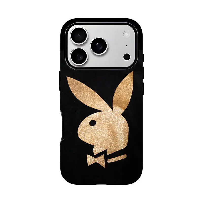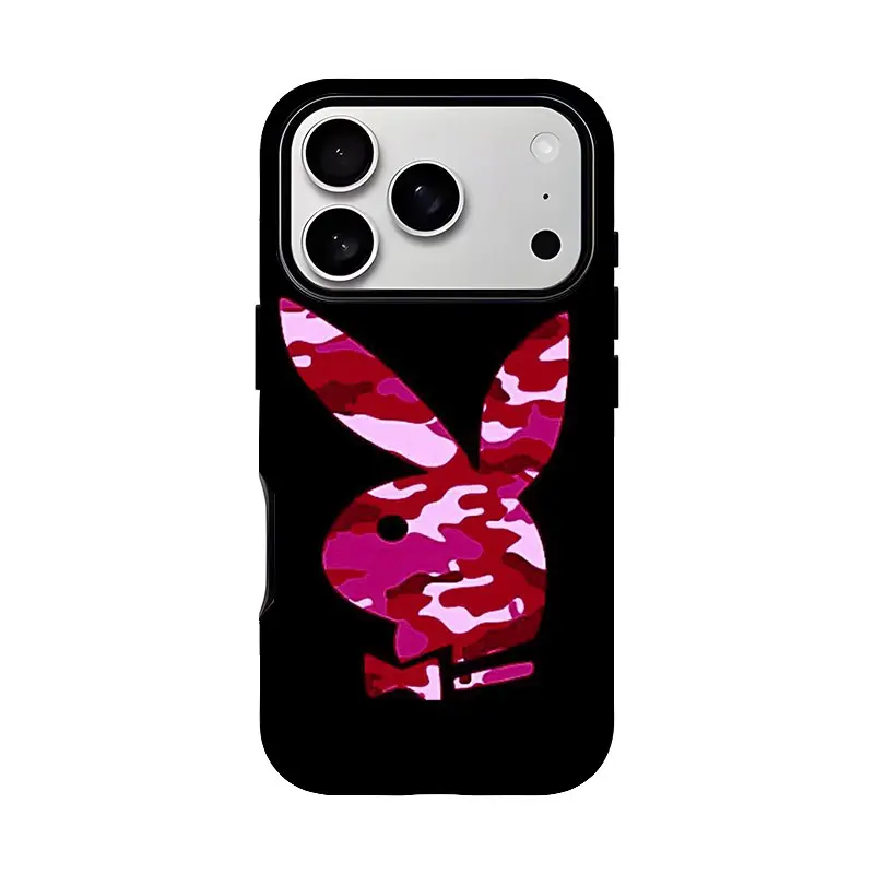 5. Cute Pink Black Rabbit Head Phone Case Protection, Shockproof For IPhone 17-11, Pro Max, Pro Plus, and Samsung S26-23 Safety Case