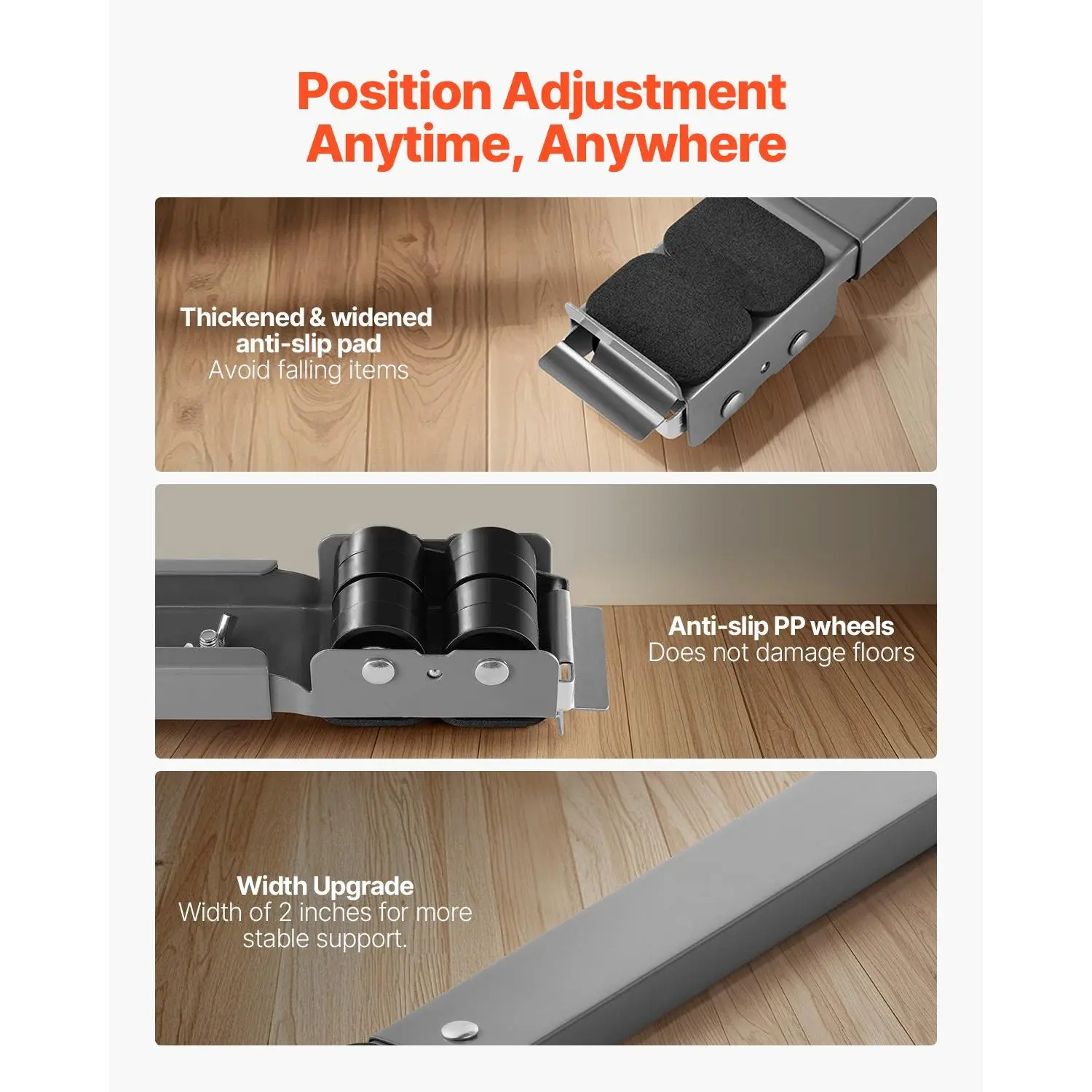 VEVOR Heavy Duty Appliance Rollers, 330 lbs Load Capacity, Furniture Dolly Mobile Roller with Adjustable Base for Washer and Dryer, Extendable Appliance Rollers Easily Move Washing Machines, Gray