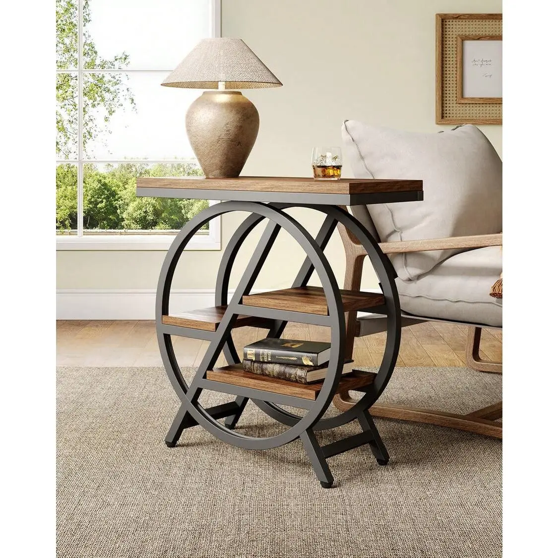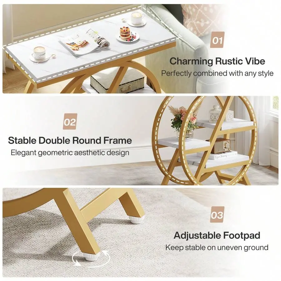 This end table comes with 4 tiers of spacious storage, providing ample room to store and display your books, plants, decorative items, and daily essentials.Everything you need is kept within easy reach, helping you maintain a tidy and organized living environment.