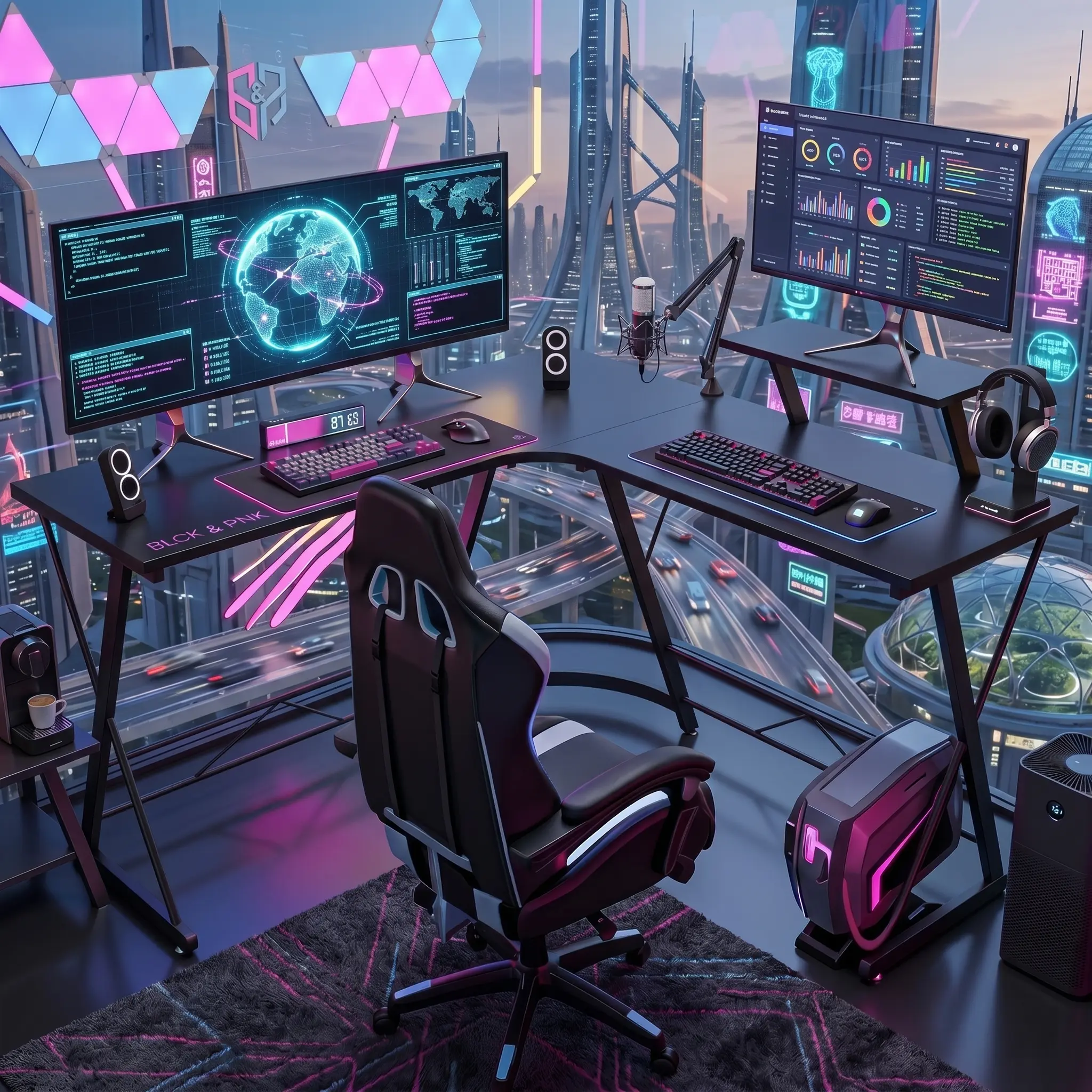 This L-shaped gaming and computer desk makes a thoughtful and practical gift for family and friends.It combines functionality, style, and durability to fit any home or office environment.