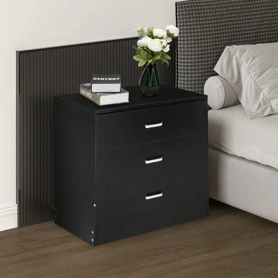 This modern simple 3-drawer dresser combines elegant design, fine craftsmanship, and practical functionality, making it a perfect addition to any indoor space.With a sleek black finish and minimalist style, it not only serves as a reliable storage solution but also adds a touch of fashion to your home decor, seamlessly blending into family rooms, bedrooms, living rooms, and home offices.