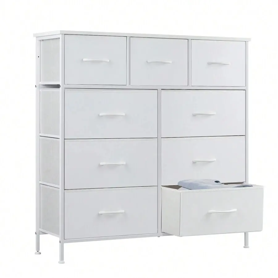 Multifunction Dresser:Designed as a vertical dresser, this 9 drawer fabric tower slides effortlessly into bedrooms, kids' playrooms, entryways or dorm corners.Neutral tones blend seamlessly with the entire storage collection, letting you build a matching, clutter-free suite across any space.