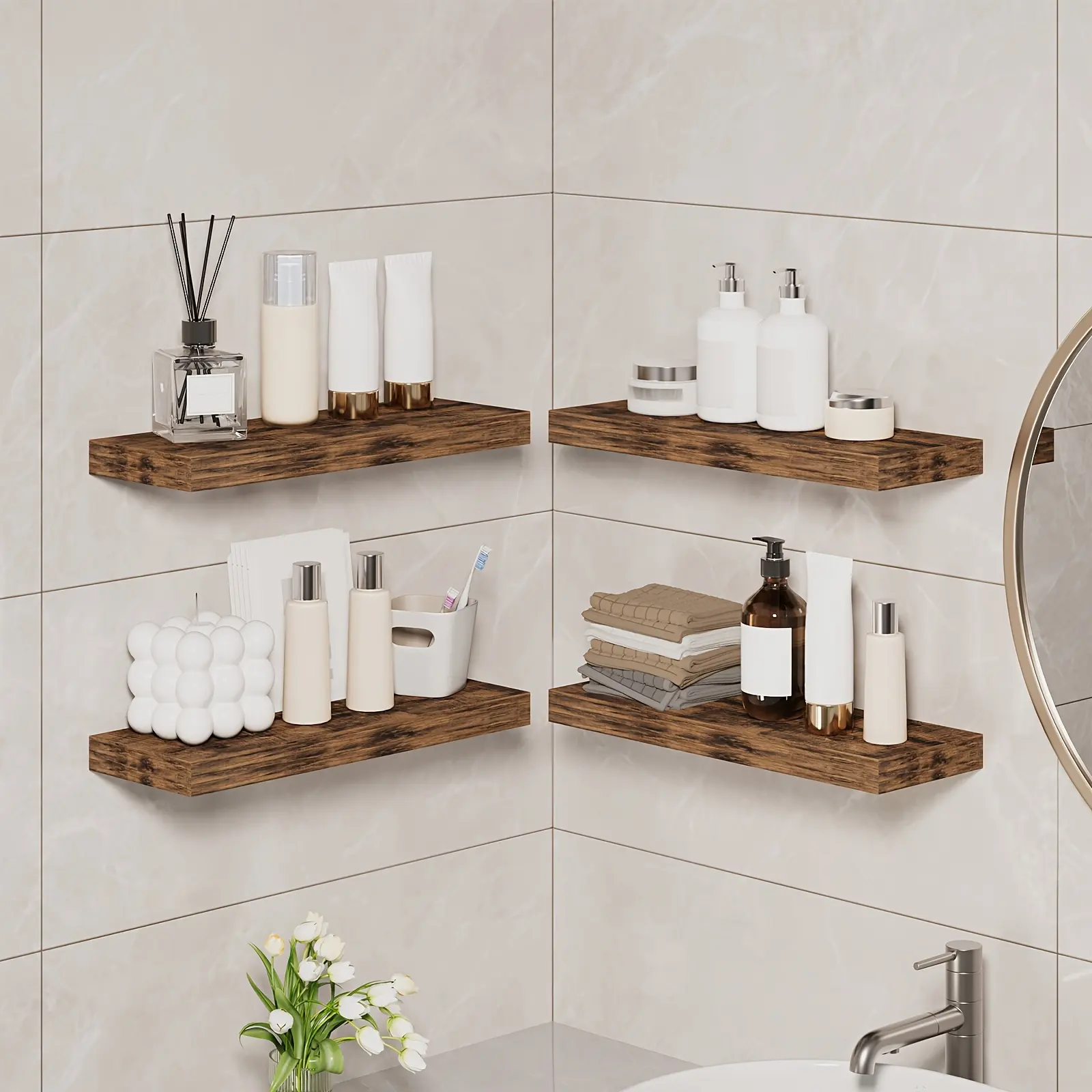 4/8pcs 15.8Inch Floating Shelves for Wall, Rustic Finish Wall Shelves, Shelves for Wall Decor, with Invisible Brackets for Home Decor, Wall Dresser, Bathroom, Living Room, Bedroom And Kitchen