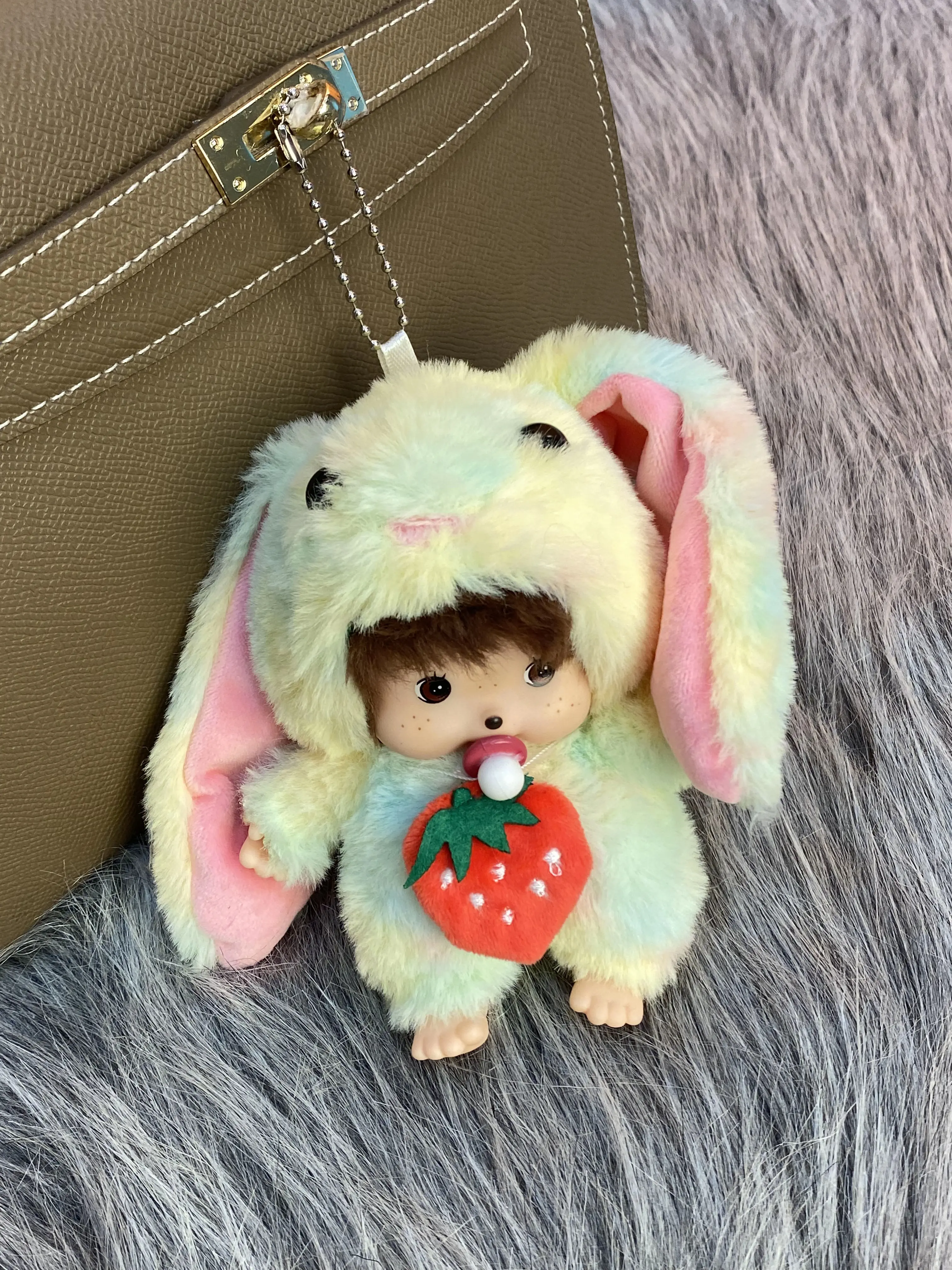 🐰 Strawberry Bunny Monchhichi Plush Keychain 🐰