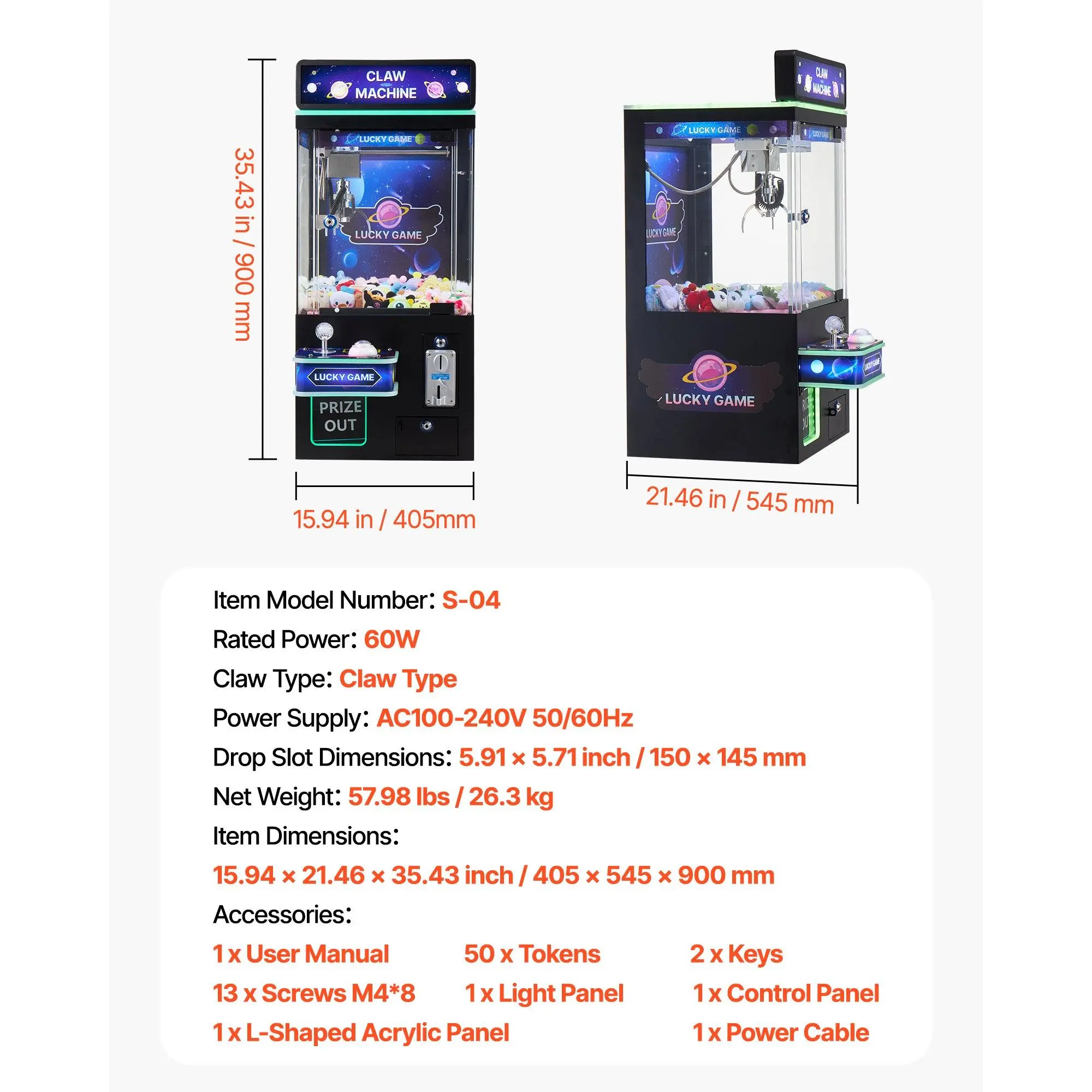 The claw crane machine comes with a detailed instruction manual and all necessary parts, allowing even beginners to assemble quickly and start enjoying endless fun.
