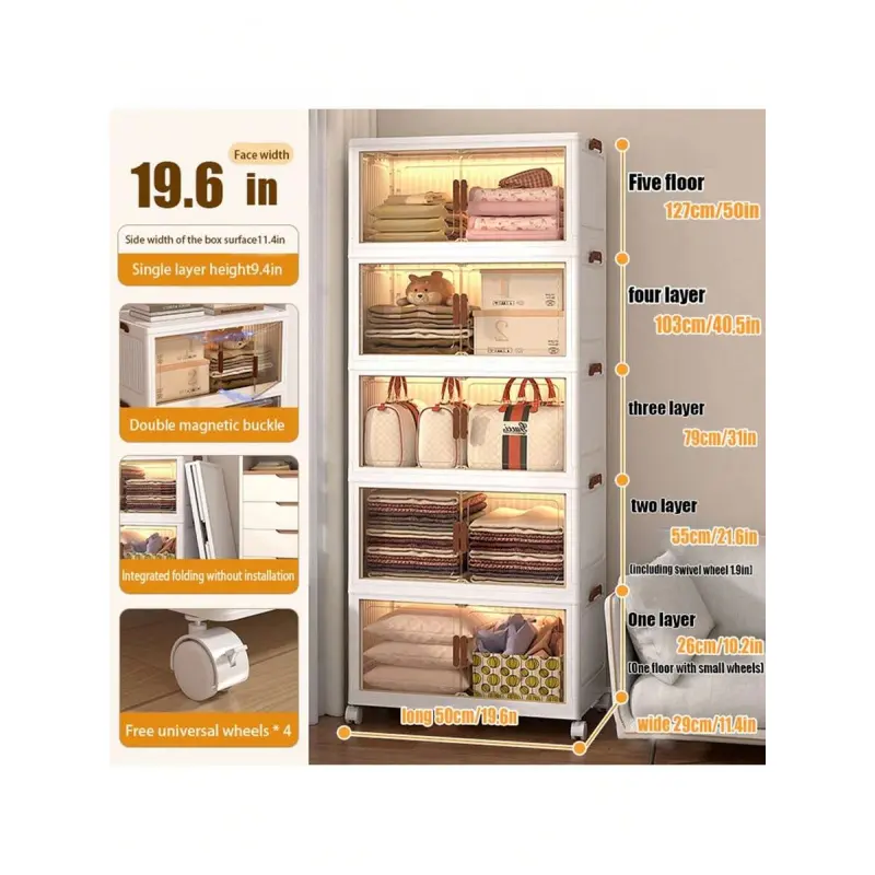 2/5layers Oversized Locker With Wheeled Doors - Waterproof Collapsible Locker For Bedroom Storage Of Clutter, Documents, Toys, Snacks And Plastic Drawers For Storage, Multi-Layer Locker