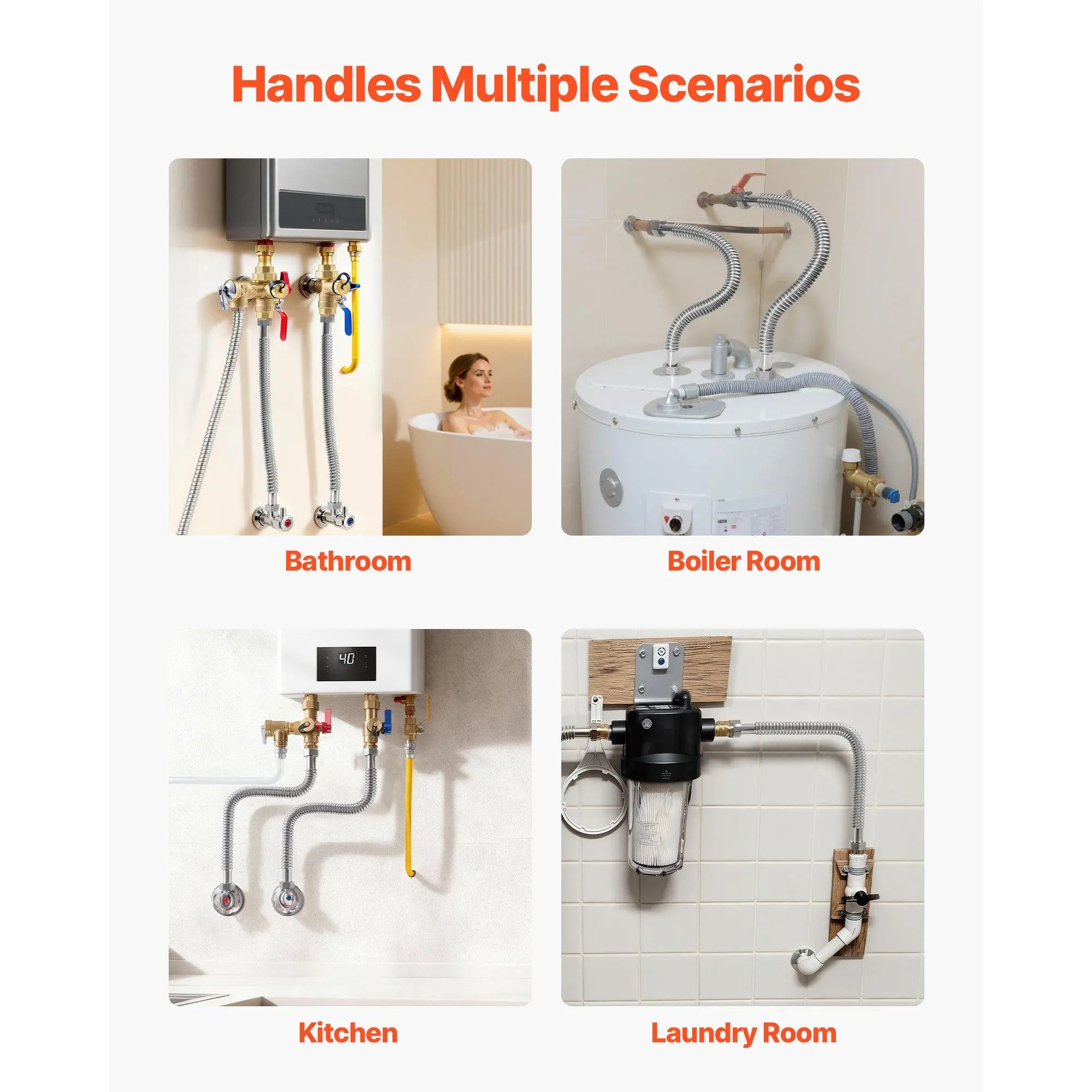 This water heater connection kit is suitable for bathrooms and kitchens, meeting various plumbing needs.