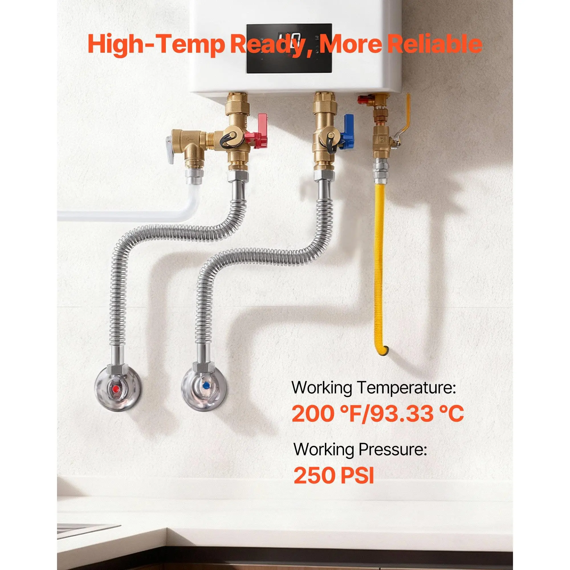 Our water heater connection withstands 200 PSI water pressure and 200 F (93.33) high temperature. It maintains stable performance in hot water, suitable for various plumbing scenarios.