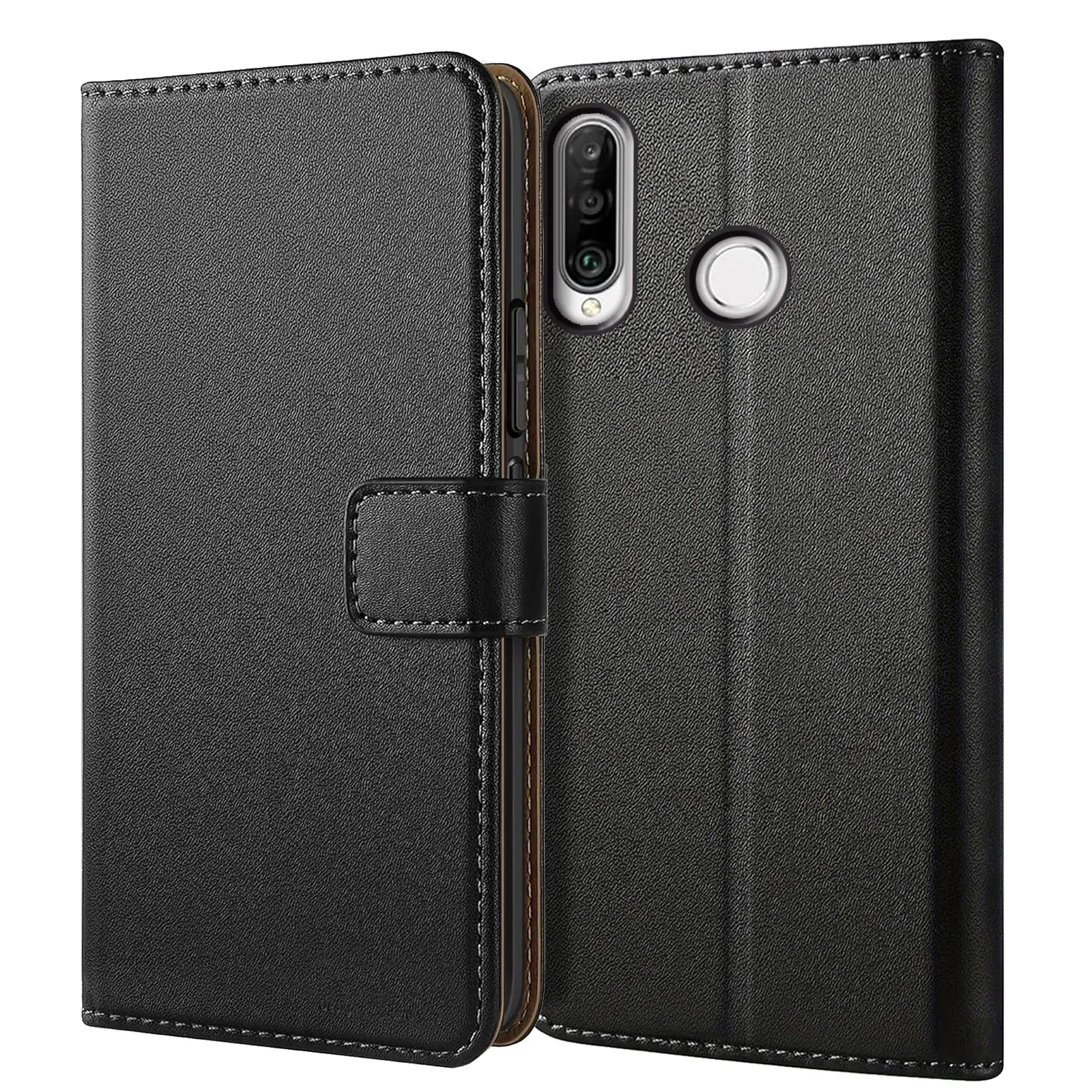Mobile Phone Case For Huawei P30 Lite Pro, With Kickstand PU Leather Card Slot Black Wallet Flip Protective Phone Case Cover