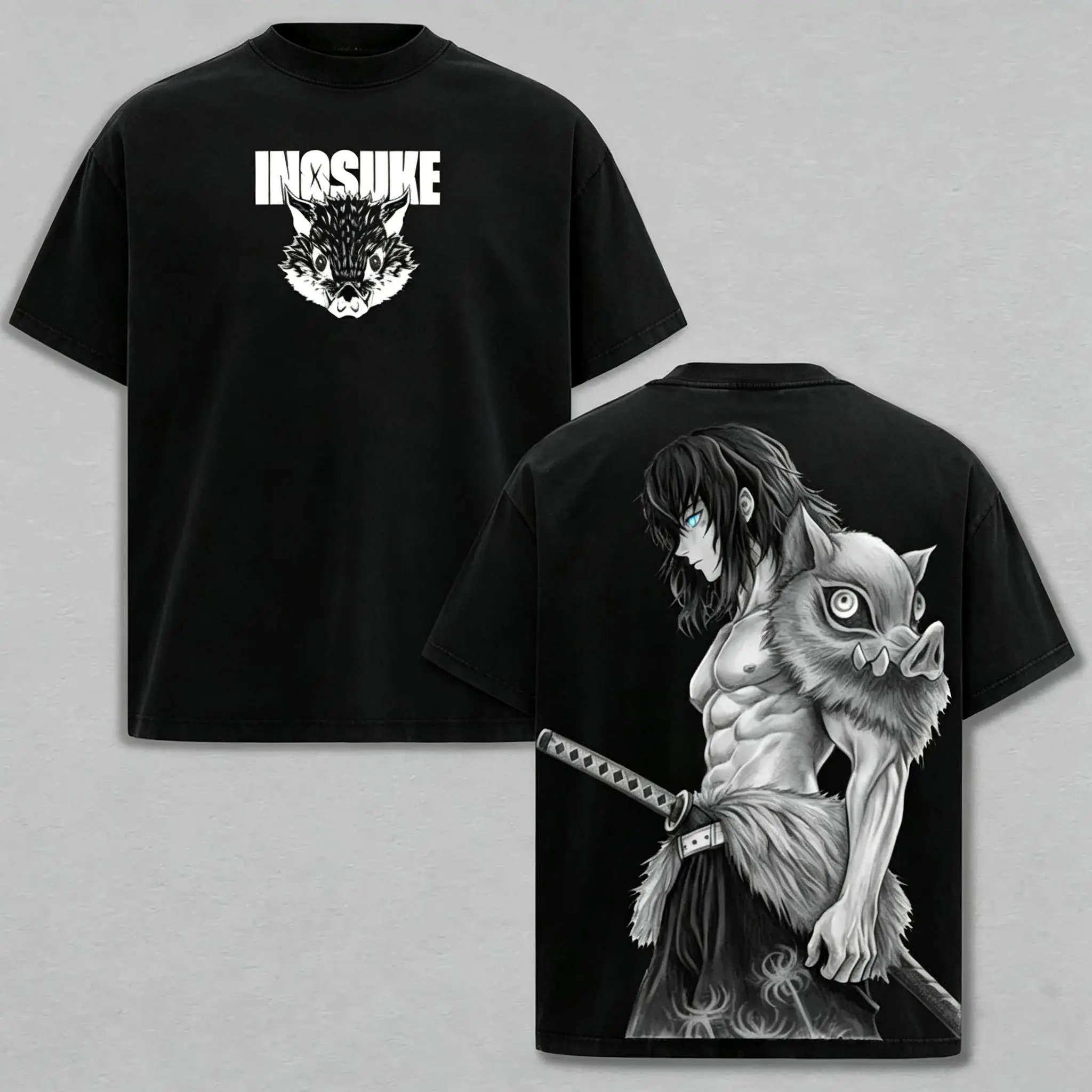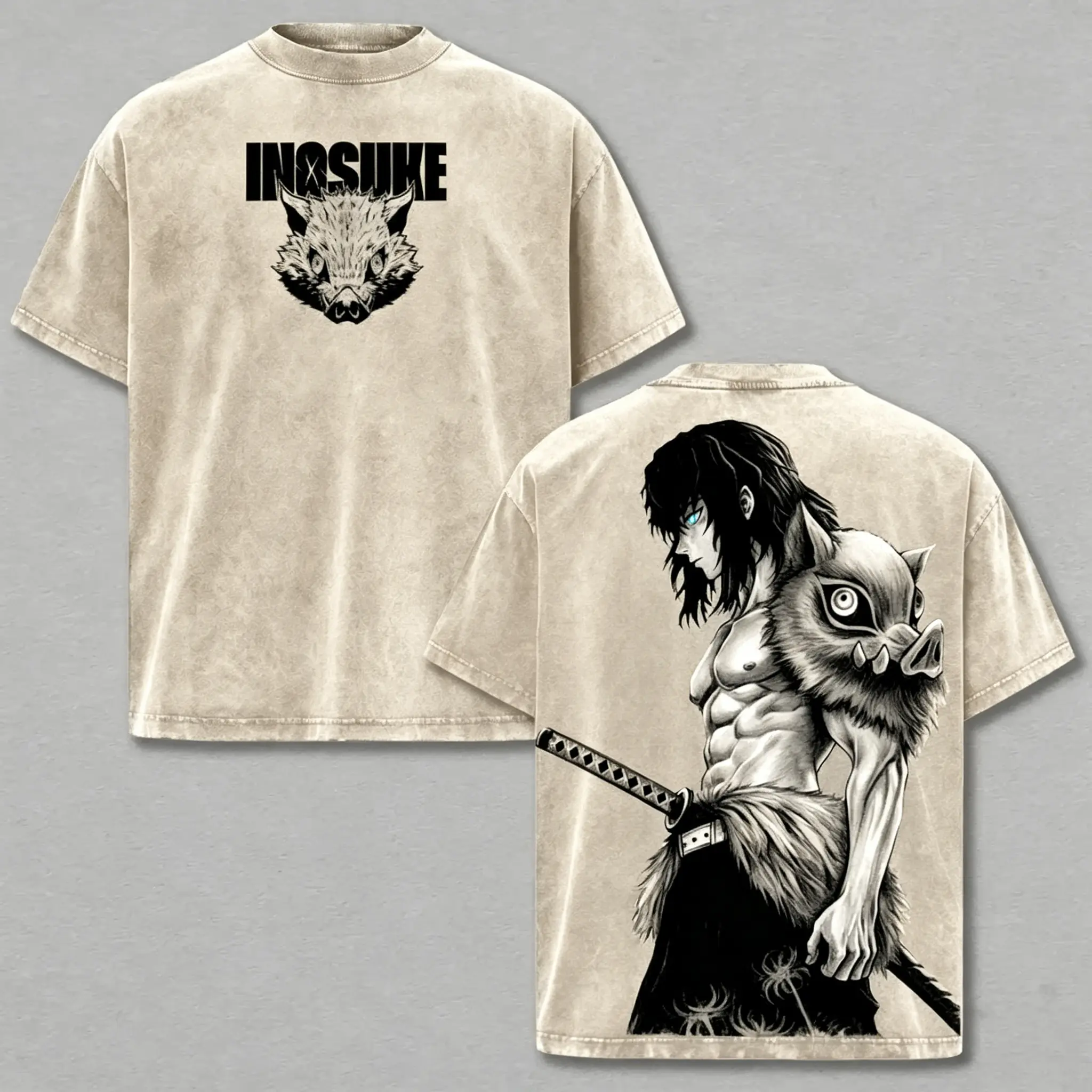 🎨 Inosuke Anime Washed Tee – Demon Slayer Vintage Manga T-Shirt