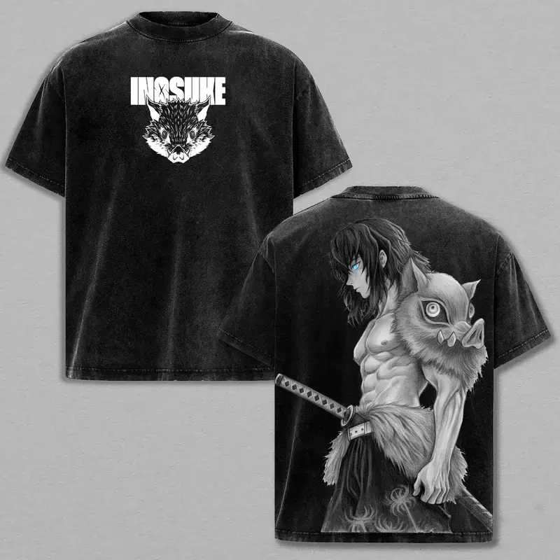 Inosuke Anime Washed Tee – Demon Slayer Vintage Manga T-Shirt, Cool Japanese Anime Graphic Shirt, Oversized Streetwear Trendy Otaku Gift, Aesthetic Shonen Anime Tee men clothing funny graphic tee men’s trendy t-shirts deals humorous streetwear boyfriend