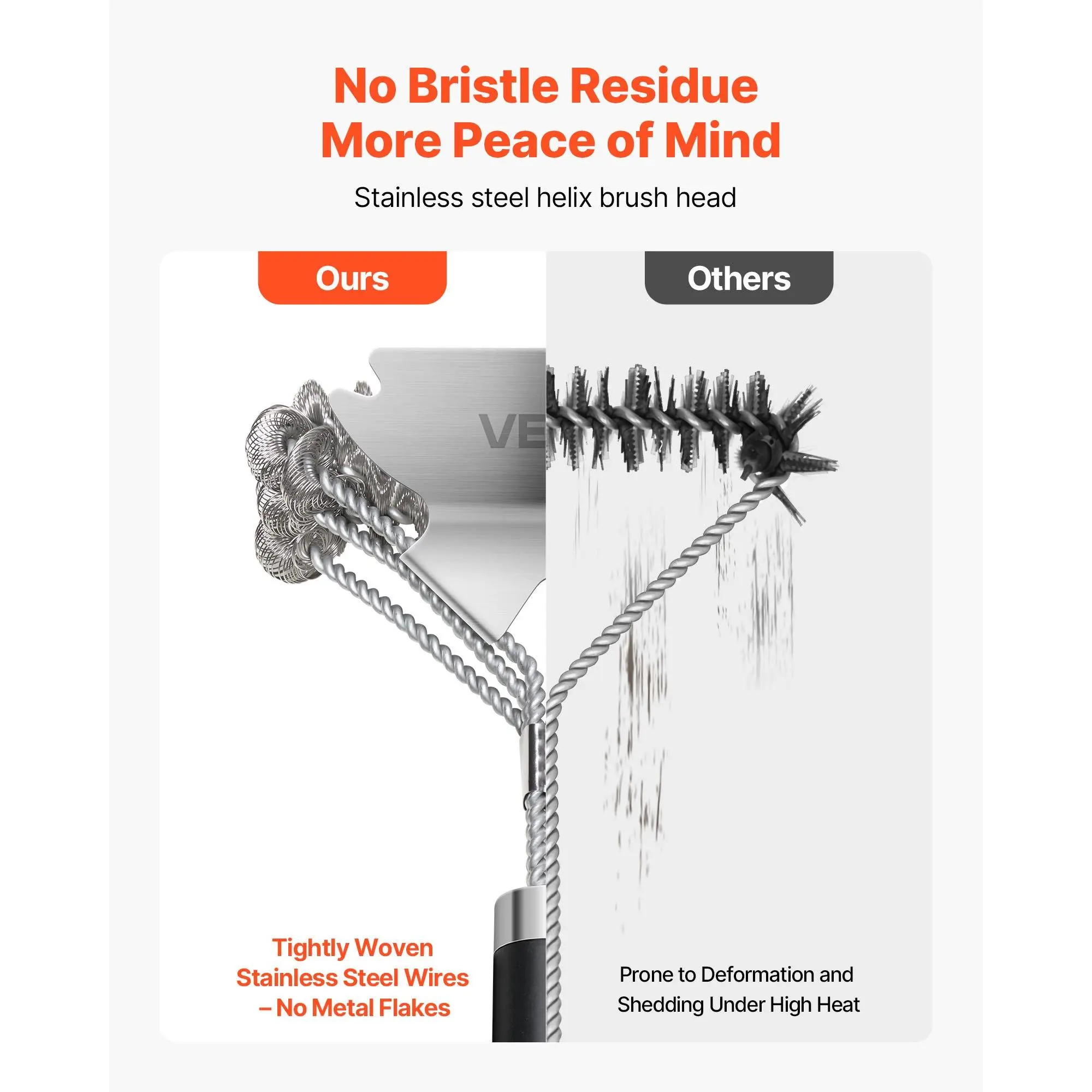 The combination of strong stainless steel wire and seamless reinforcement rings ensures that this helix grill brush with scraper remains intact under intense pressure during cleaning. No need to worry about rust, bending, or breaking.