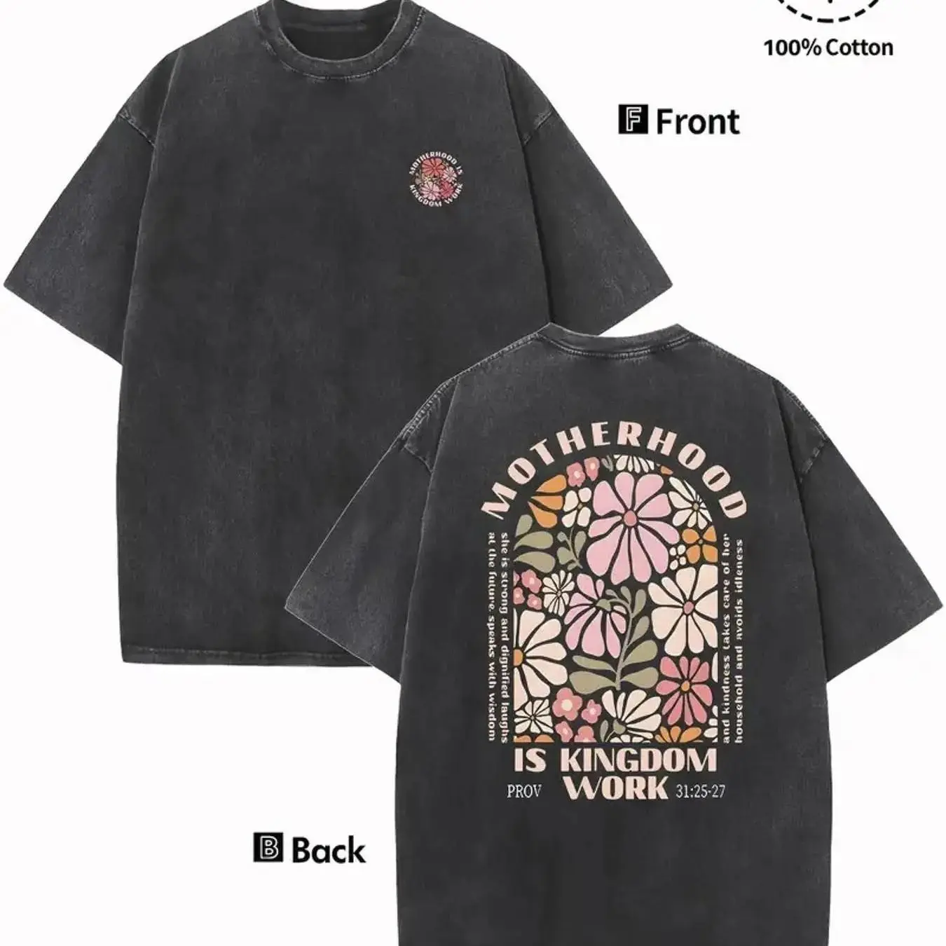 230g Double-Sided Washed T-Shirt | Motherhood is the Kingdom of Work, High-Quality Batik, Vintage, Pattern Printed, Machine Washable, Sufficient Thickness for Summer, Outdoor, Holiday Gift men clothing