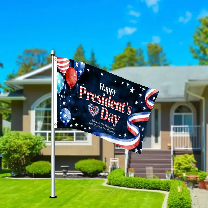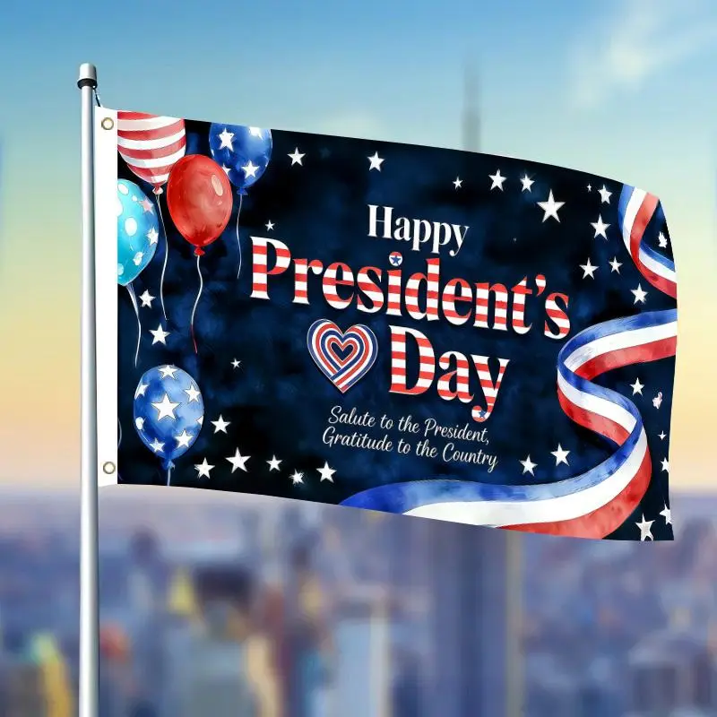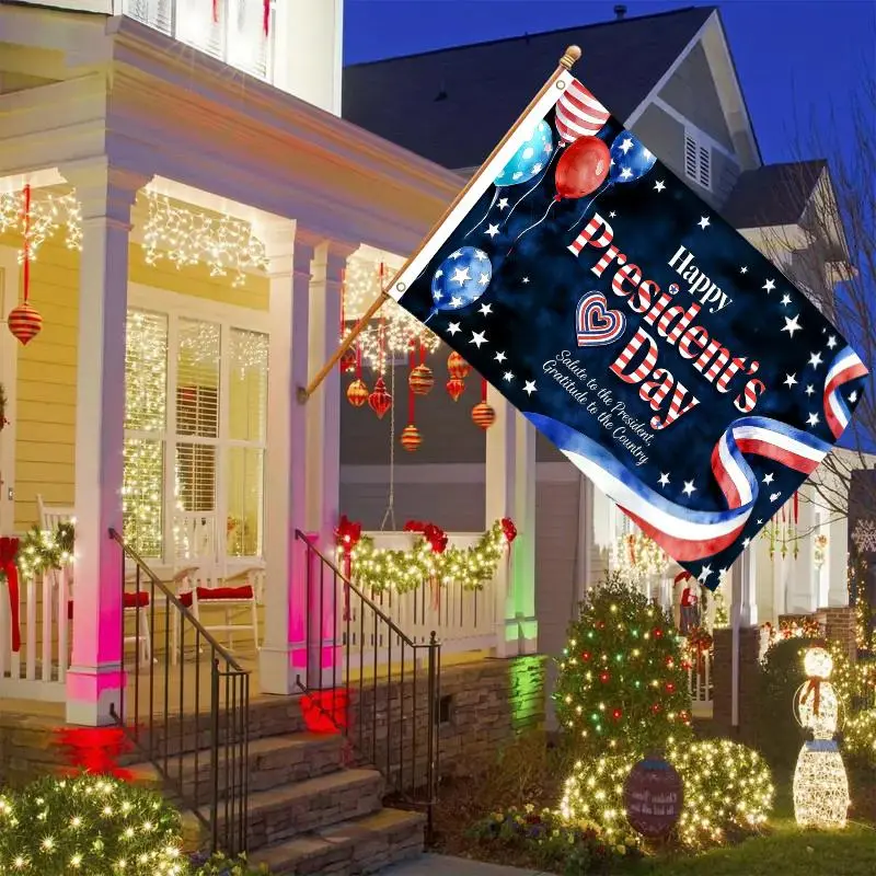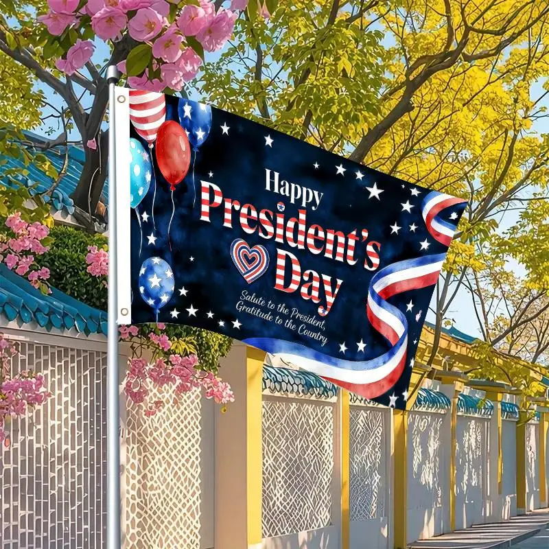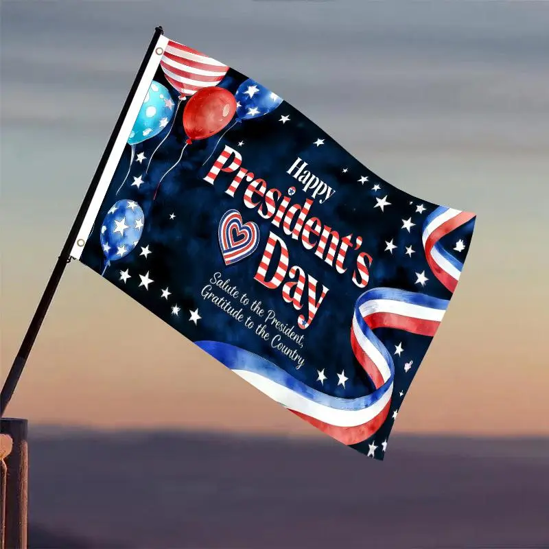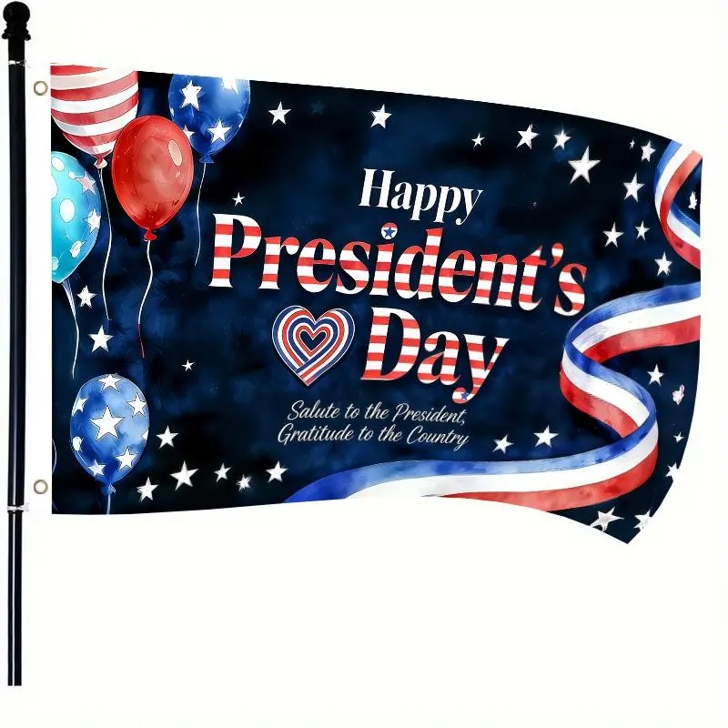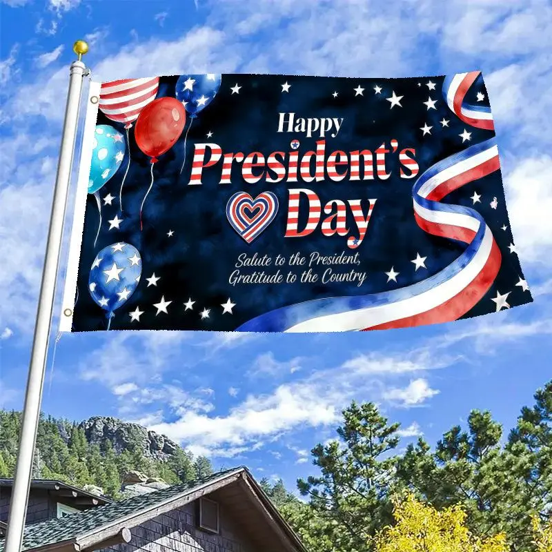 1pc Happy President's Day Patriotic Flag 3x5 FT, Balloons Heart Ribbon Design Single-Sided Outdoor Hanging Flag with Two Hole Ring, No Electricity Needed for Courtyard Yard Decor