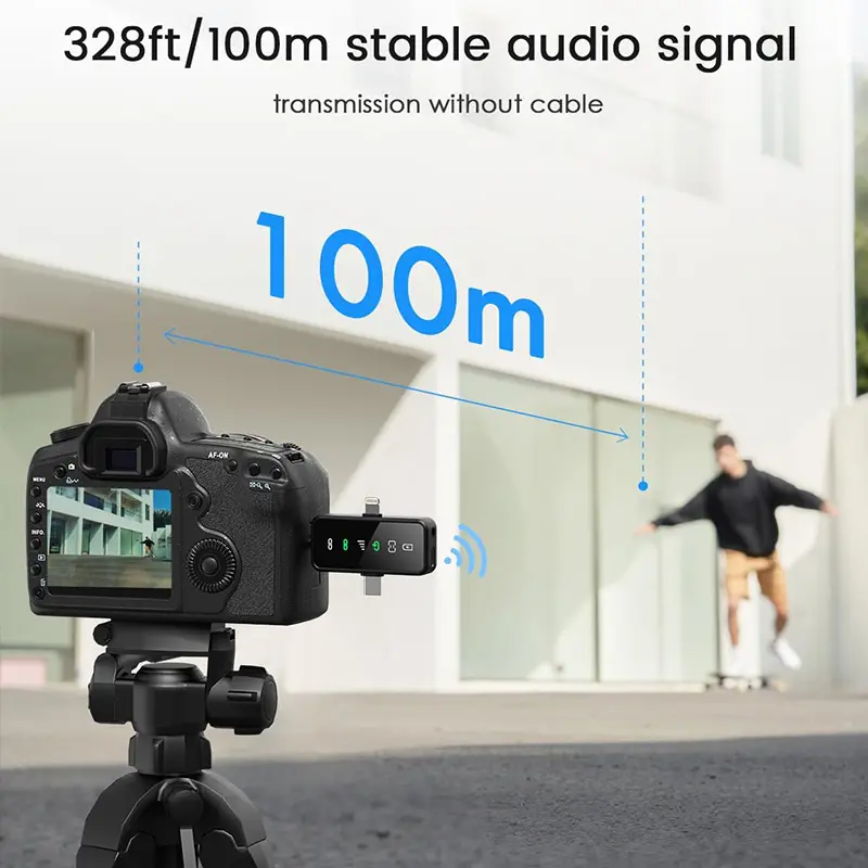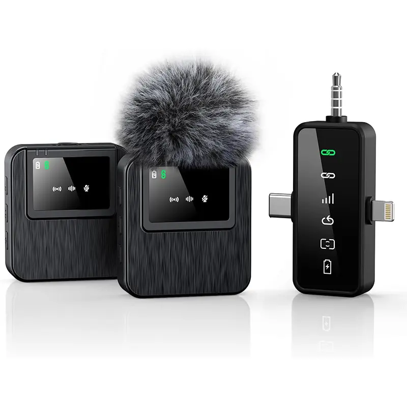 Wireless Lavalier Mic for iPhone Android & Camera, 3-in-1 Universal Wireless Microphone with Clear Audio & Noise Cancelling, Plug & Play Wireless Mic for YouTube TikTok